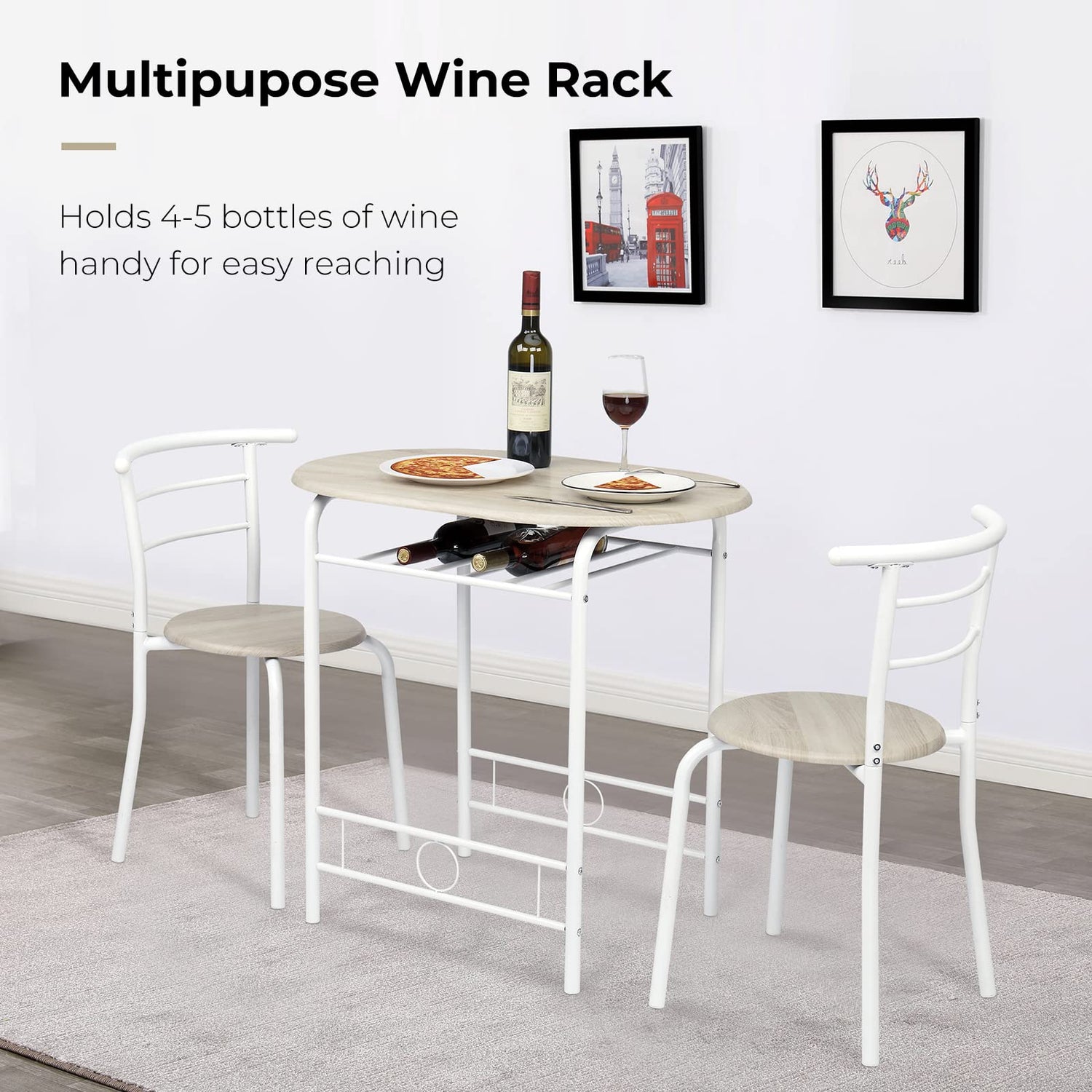 VINGLI 3 Piece Dining Set,Small Kitchen Table Set for 2,Breakfast Table Set,Kitchen Wooden Table and 2 Chairs for Small Space/Dining Room/Apartment,Metal Frame,Wine Rack,White&Light Oak