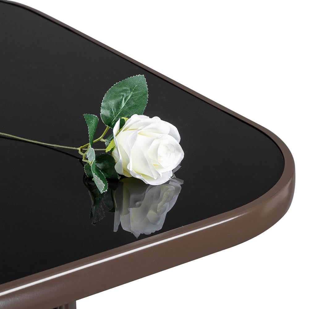 - All Weather Resistant:The Tempered Glass Metal Table is constructed by sturdy yet lightweight premium metal frame. With powder coated finish, the outdoor bistro table is rust proof
