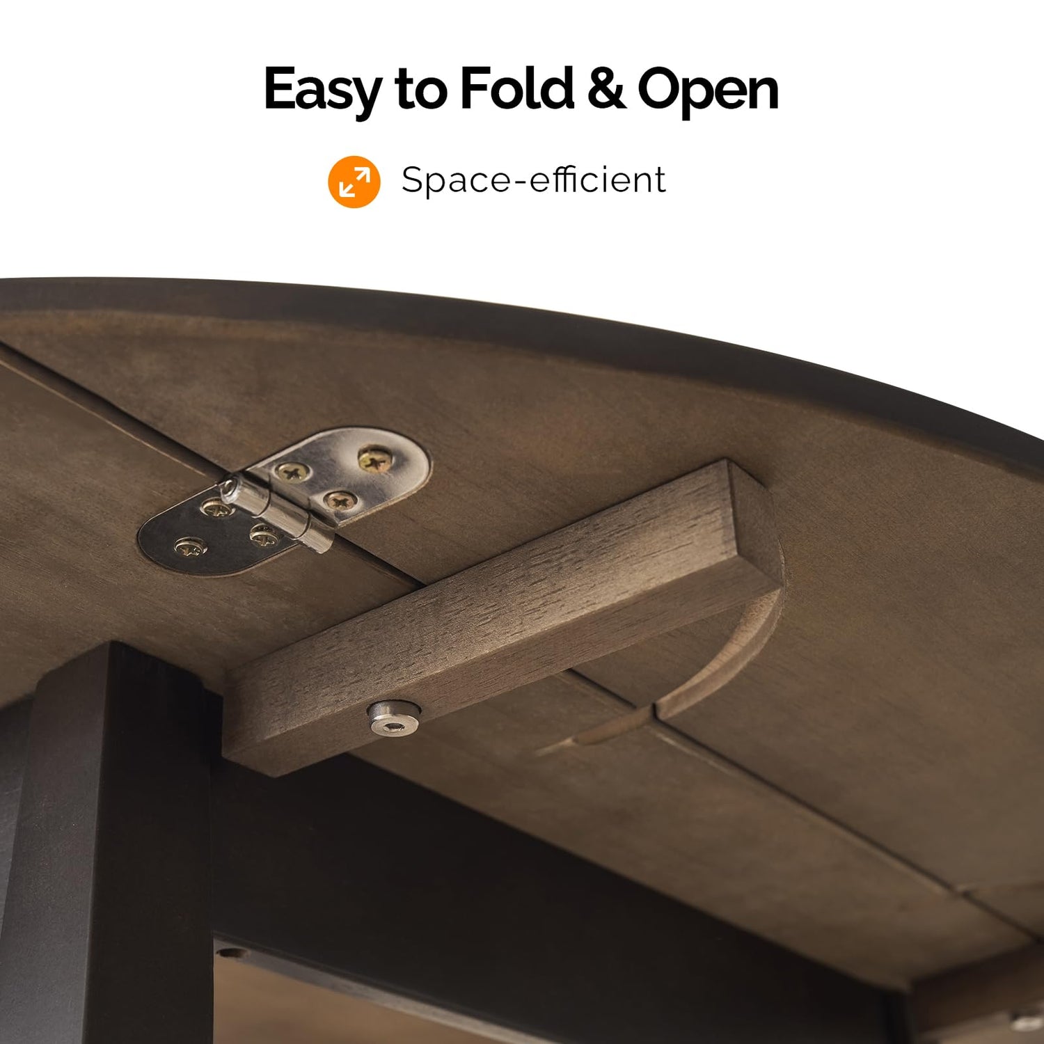 - Space-Saving: The table has two hinged drop edges for easy maneuvering, and when not in use, put down either a single leaf or both leaves to save space