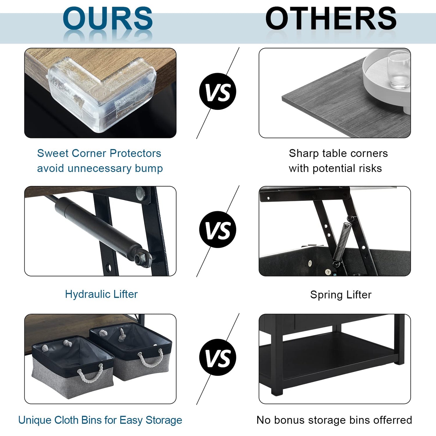- 【Upgraded Design】 1.Shifting the spring lifter into a pre-assembled hydraulic mechanism saving stretching installation hassle of springs; 2.Offer premium cloth storage bins together with the table for an added value ; 3. Extra corner protectors for better protection;