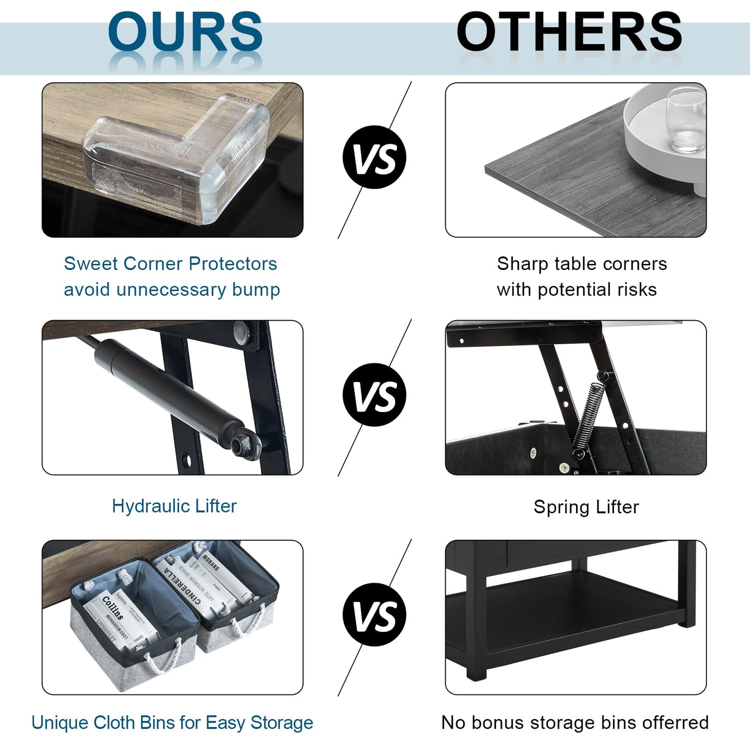 - 【Upgraded Design】 1.Shifting the spring lifter into a pre-assembled hydraulic mechanism saving stretching installation hassle of springs; 2.Offer premium cloth storage bins together with the table for an added value ; 3. Extra corner protectors for better protection;