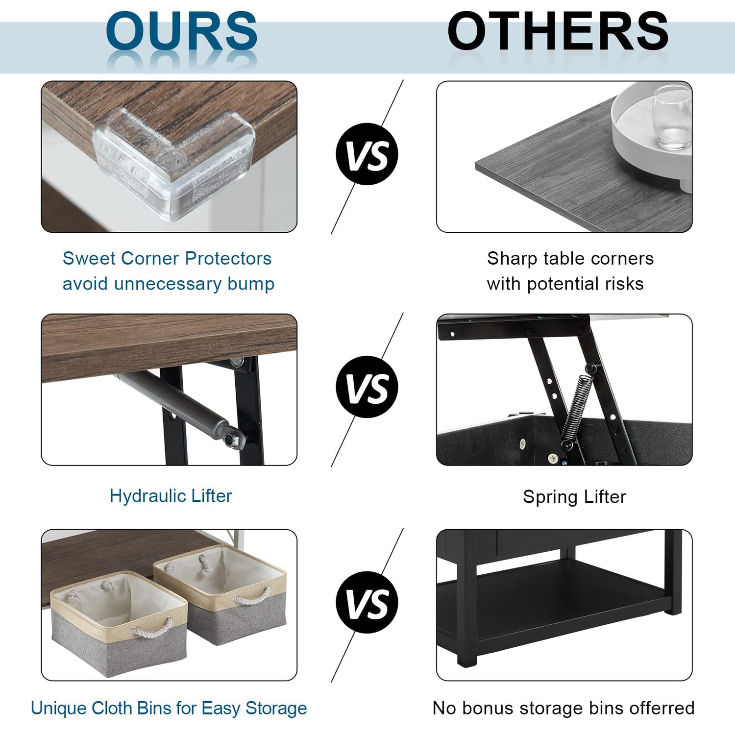 VINGLI 36" Lift Top Coffee Table with Free Cloth Storage Bins, White Walnut Framhouse Coffee Table for Living Room, Small Modern Coffee Table for Small Space in Minimalistic Style, Dark Walnut