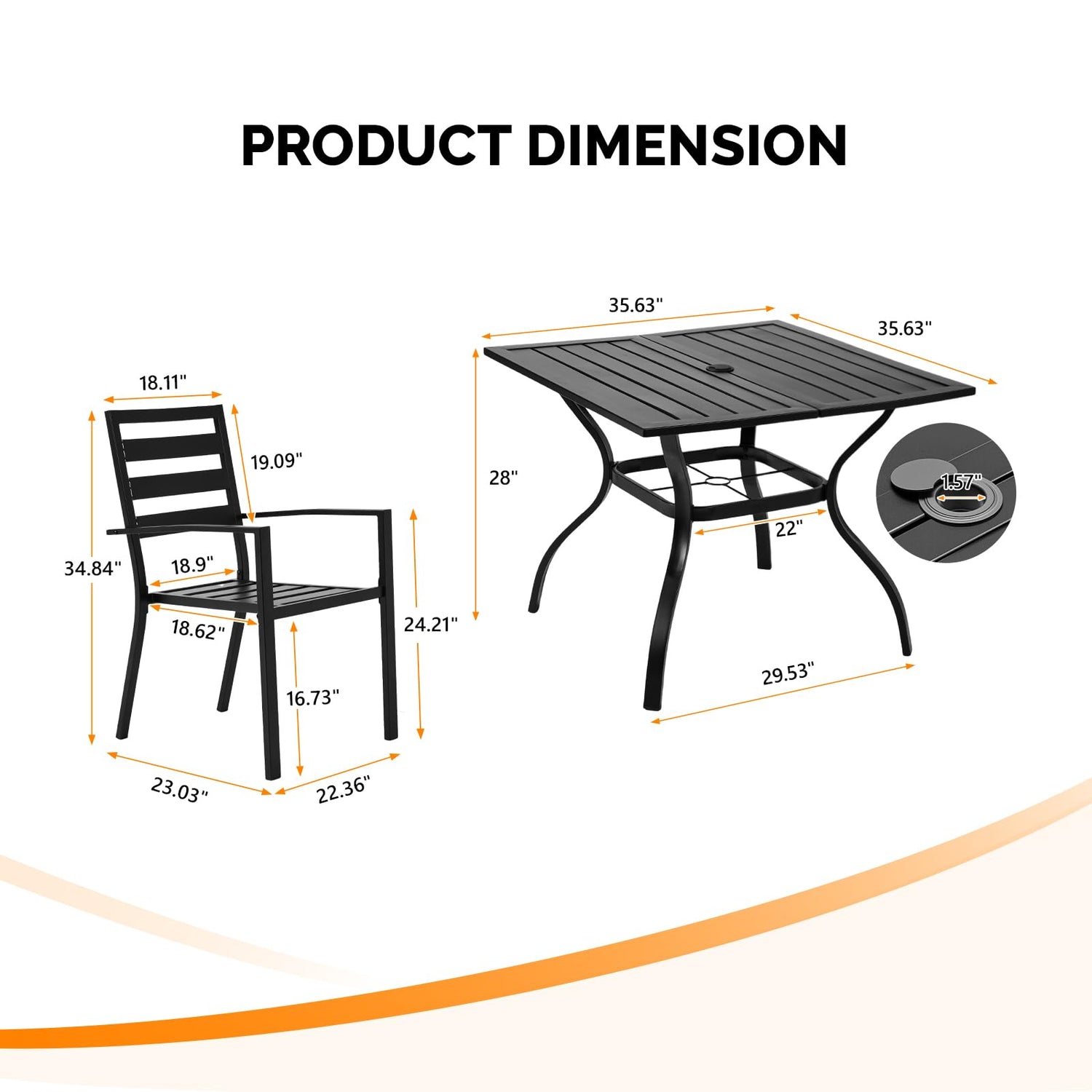 - Functional Umbrella Hole: The 35.63" square outdoor dining table includes a 1.57" central hole for sun umbrella, enhancing outdoor dining comfort