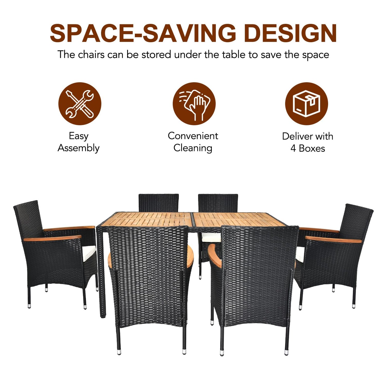 VINGLI 7 Pieces Patio Dining Set, Wicker Outdoor Dining Set for 6 Patio Furniture Set with Acacia Wood Table Outdoor Table and Chairs for Garden and Yard