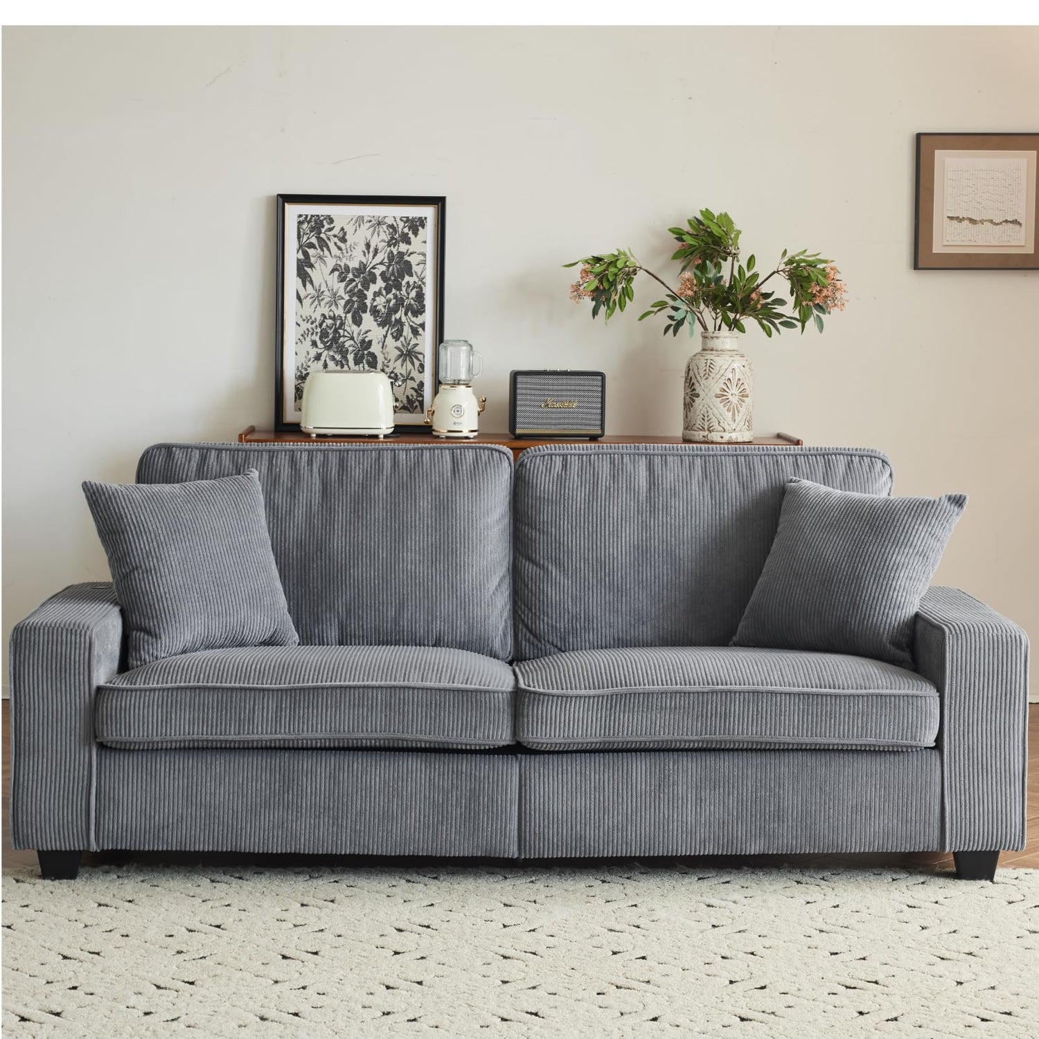 VINGLI 83" Modern Loveseat Sofa Couches for Living Room, Dark Gray Cloud Feel Comfy Sofas Deep Seat Couch Corduroy Sofa with Wide Armrest, USB Charging Port, 2 Throw Pillows
