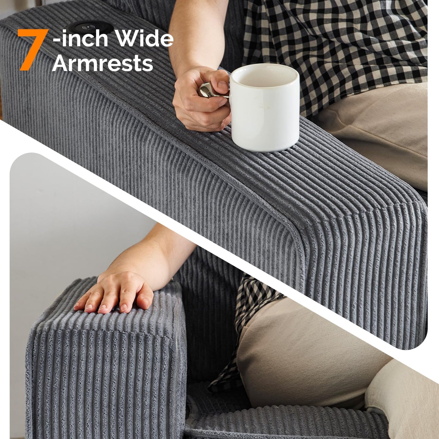 • Premium Corduroy Material: Upholstered in luxurious corduroy for a stylish and durable finish.