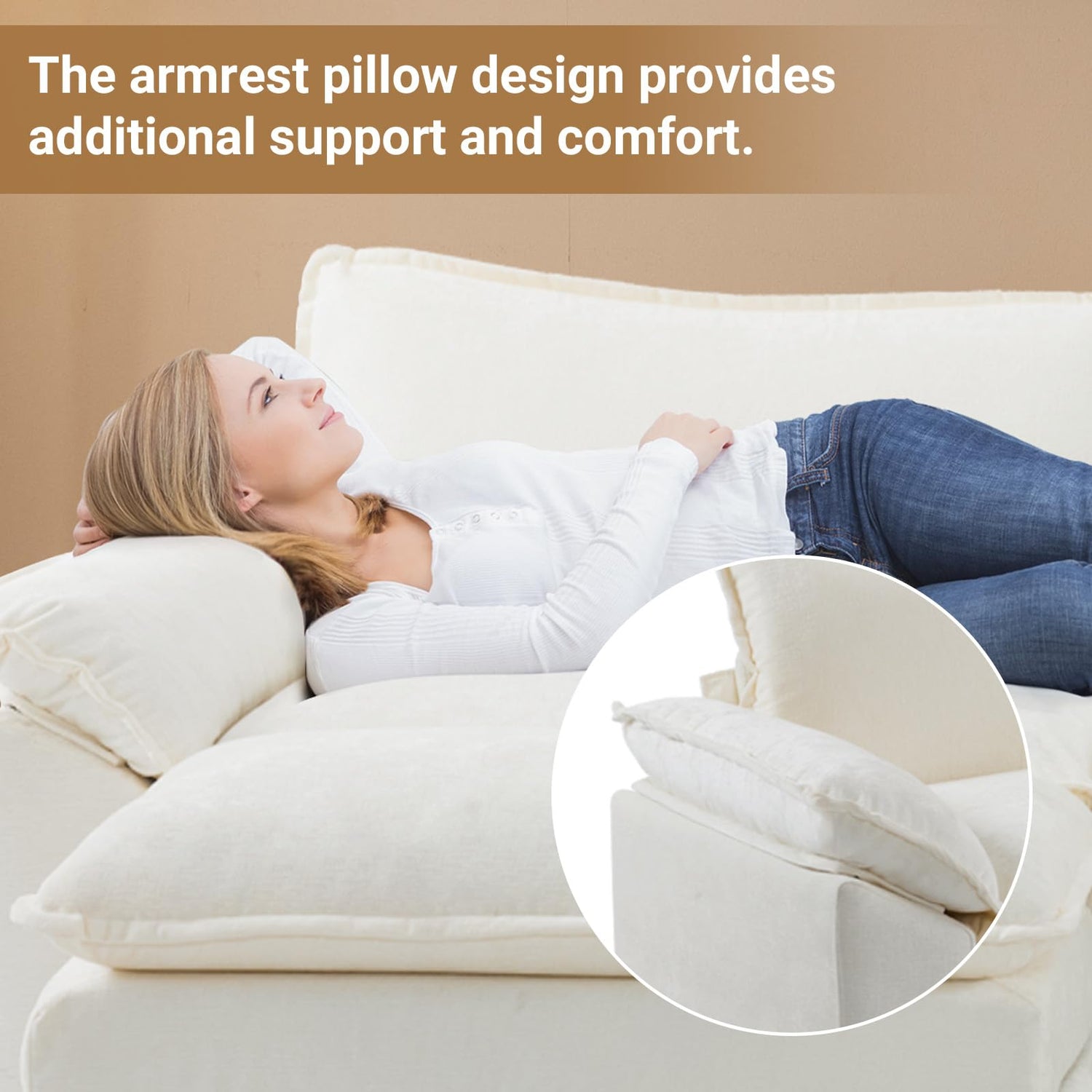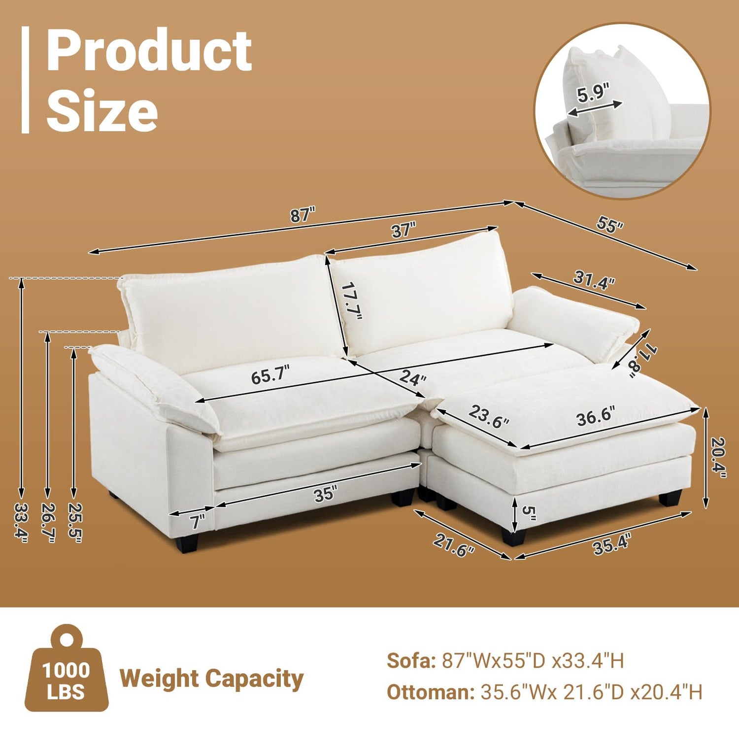 VINGLI 87" Convertible Sectional Sofa,L-Shaped Deep Seat Sofa Couch for Living Room,Modern 2-Seat Loveseat Sofa with Ottoman for Small Space(Creamy White, 87")