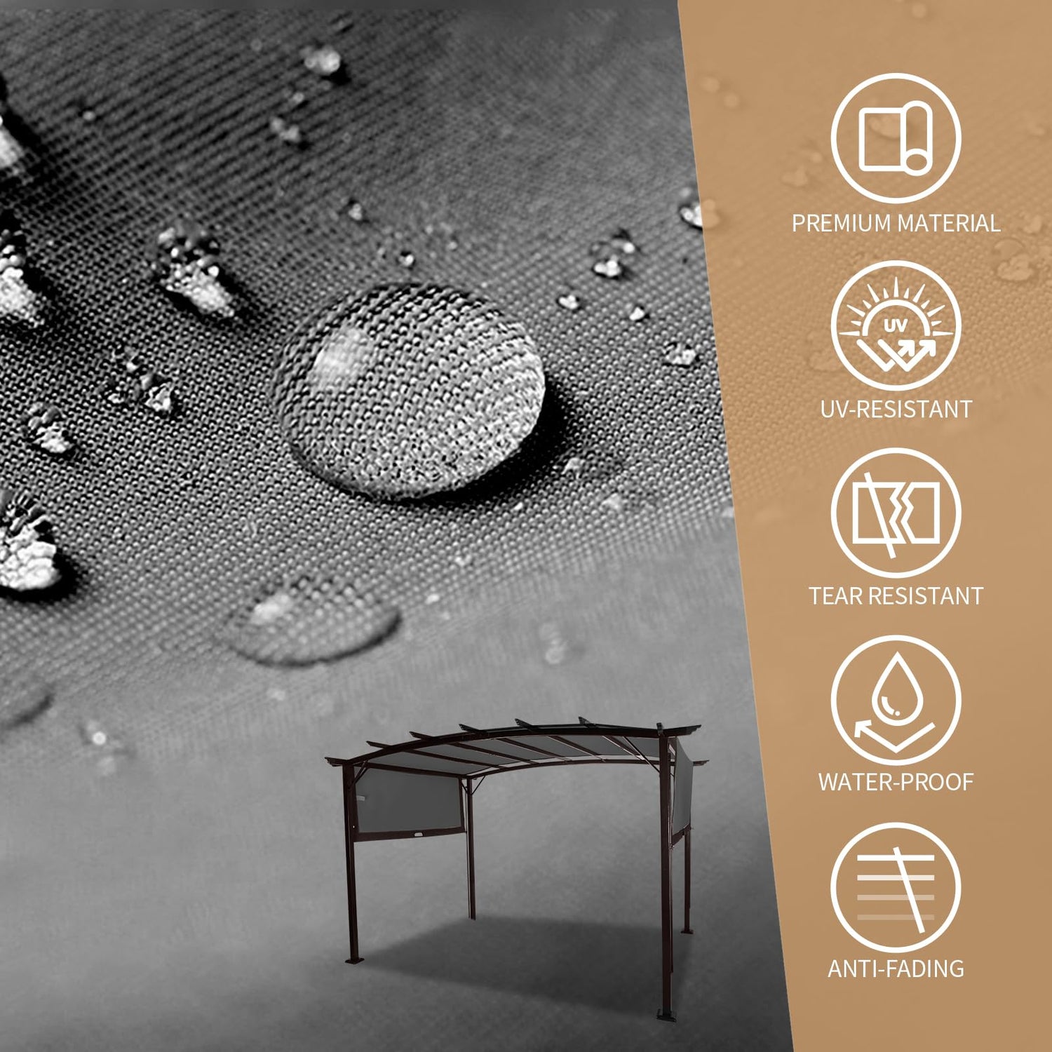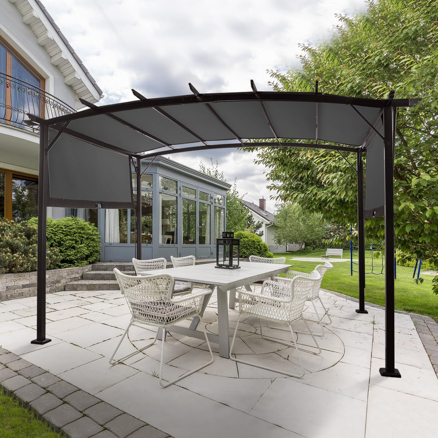 - [Adjustable Canopy]: This arched pergola features a flexible canopy that can be independently adjusted to deliver your desired level of sunlight or shade. Its retractable design offers the utmost convenience in customizing either side
