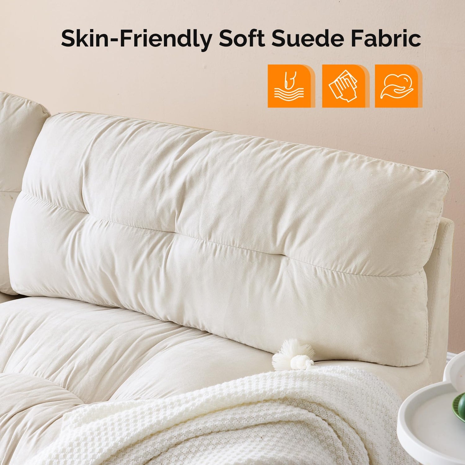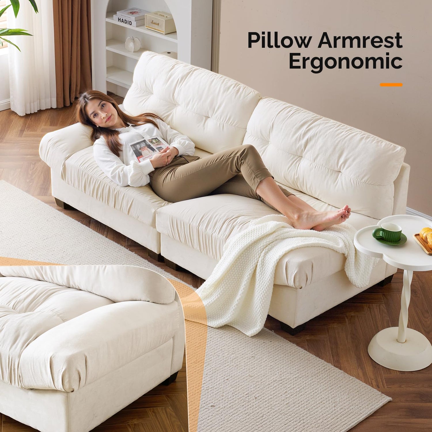 VINGLI Cloud Couch 80" Loveseat, 22.4" Deep Seat, Suede Upholstery Cozy Comfy Couches for Living Room Modern Love Seat Sofa, Pillow Armrest (White)