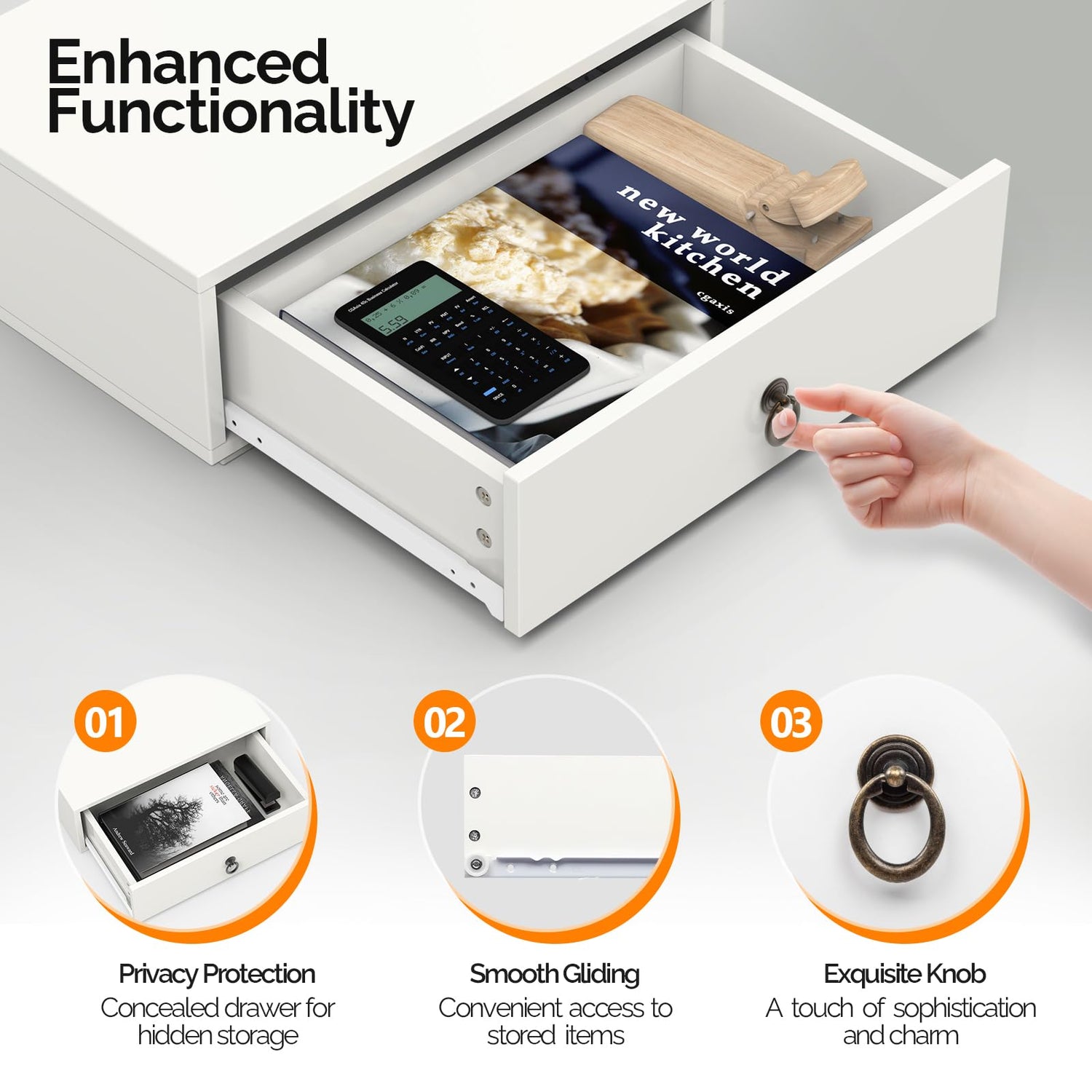 - 【Smooth Drawer Operation】 Valuables or personal items can be discreetly stored in the hidden drawer, reducing clutter in the bedroom.This floating drawer is equipped with metal slides, which allows for smooth and silent opening and closing. Drawer slide rails with proper locking mechanisms ensure the drawer stays securely closed when not in use, preventing accidental spills or damage to items inside.