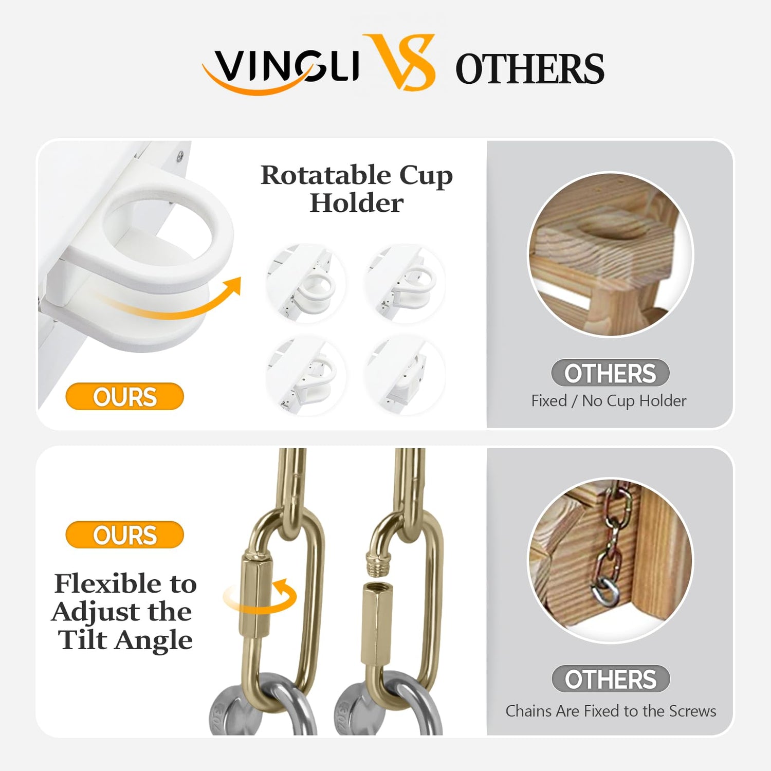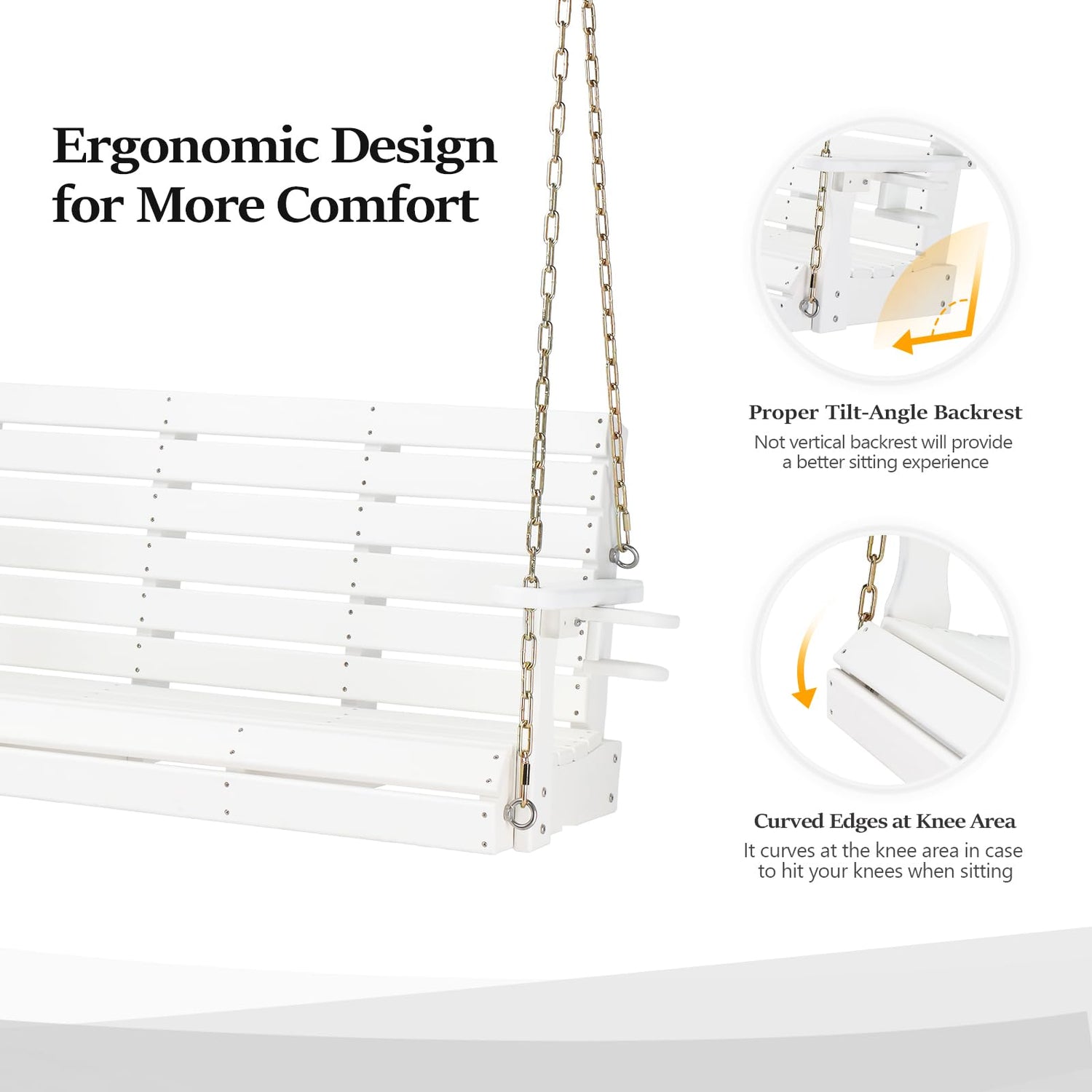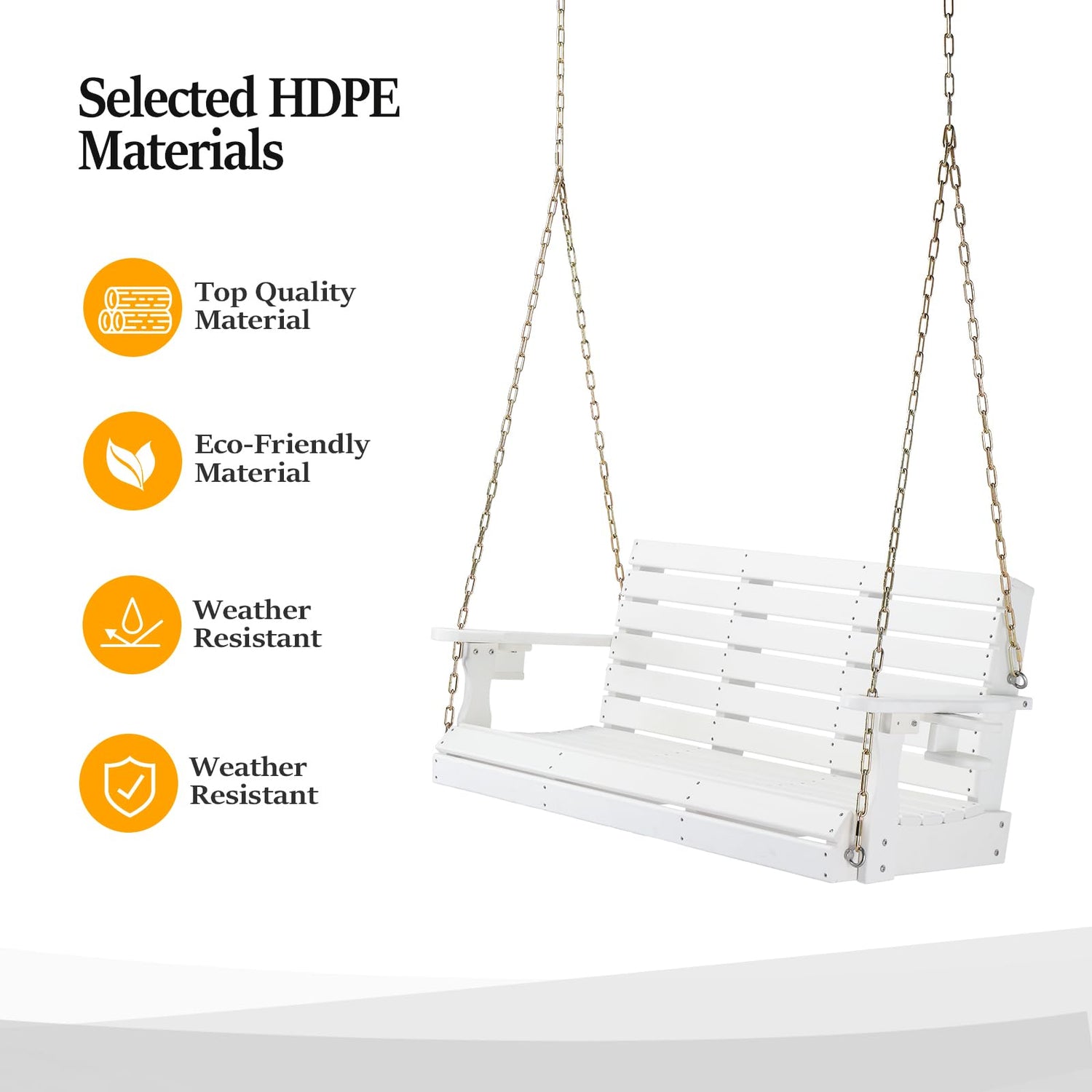 VINGLI Heavy Duty 1600 LBS HDPE Porch Swing Outdoor with Rotatable Cup Holder, 4 FT Patio Bench Swing with Adjustable Chains, 2 Person Hanging Porch Swing Chair for Porch, Yard, Tree, Garden - White