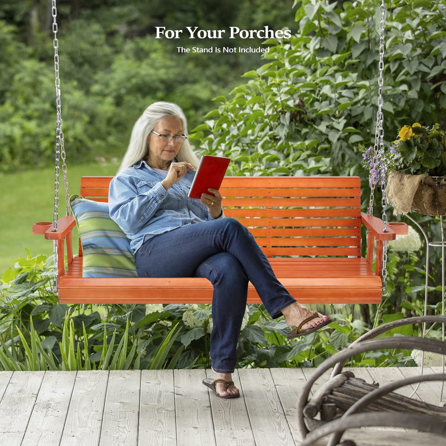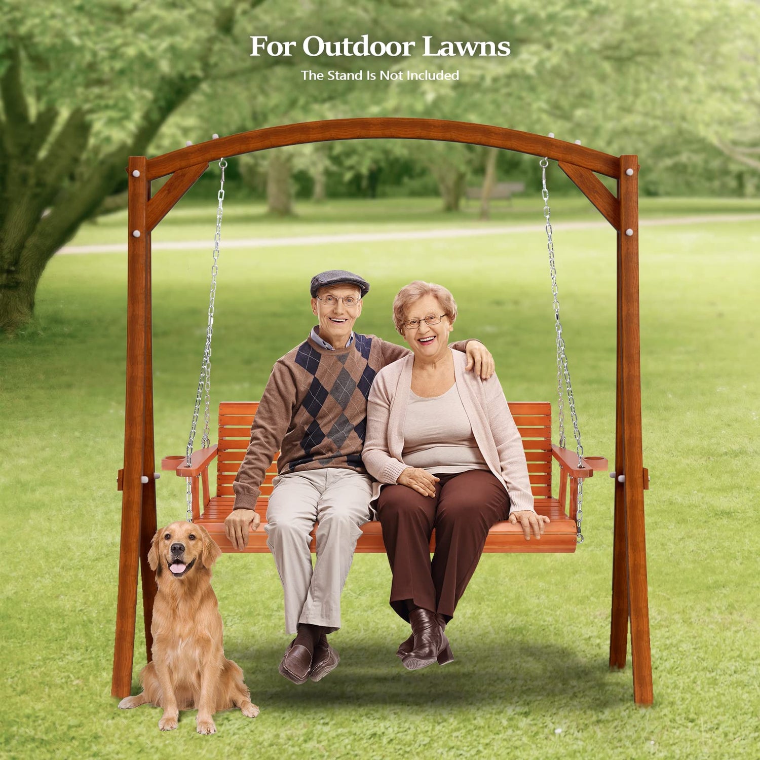 VINGLI Heavy Duty 880 LBS Patio Porch Swing Outdoor with Cup Holder, Hanging Chair with Adjustable Secure Chains, Pine Wood Outdoor Bench Tree Swing for Yard | Garden | Lawn | Balcony (5 FT, Brown)