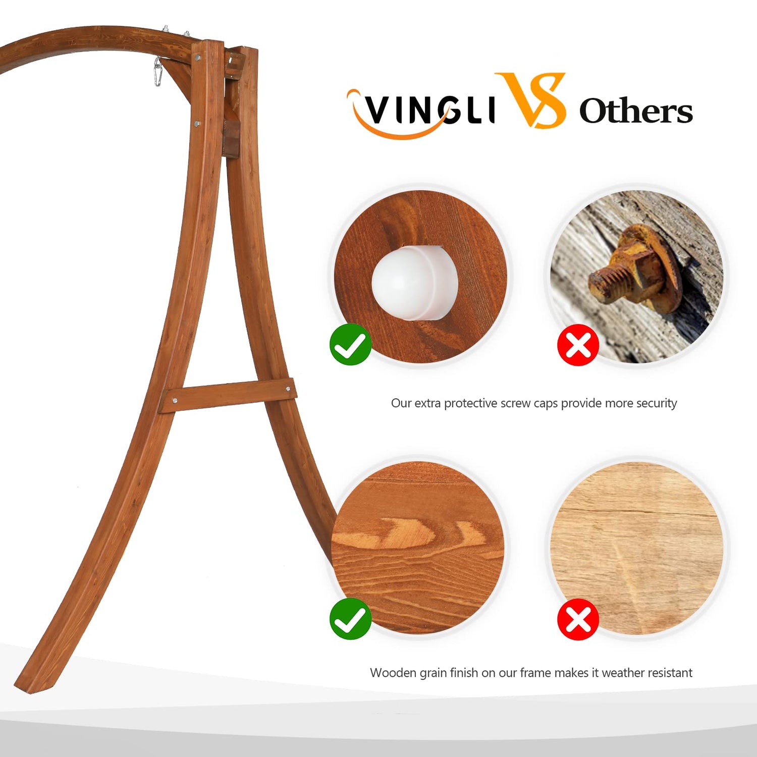 VINGLI Heavy Duty Wooden Swing Frame for Adults Kids, Strong A-Frame Porch Swing Bench Stand for Indoor & Outdoor, Curved Arc Top Design, Supports Up to 660 LBS