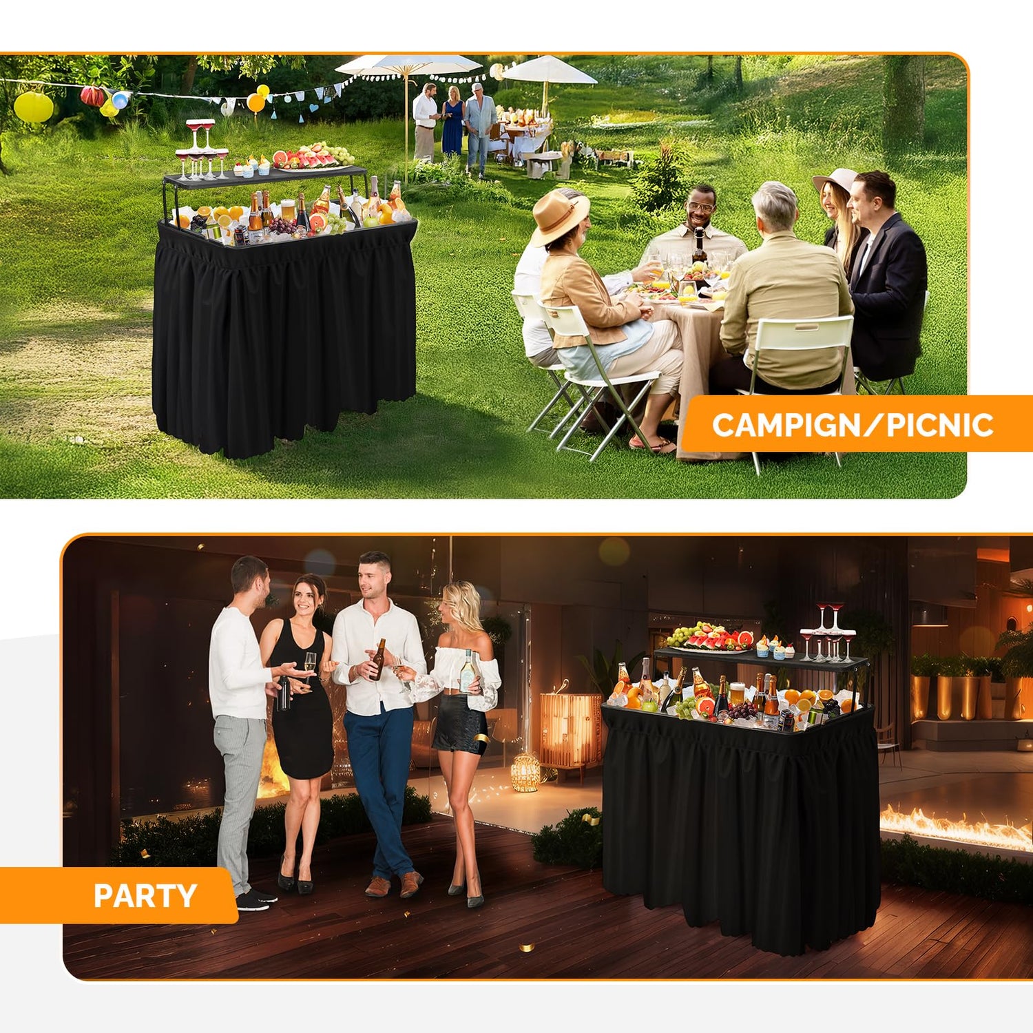 VINGLI Ice Table with Extra Storage Shelf, Portasble Cooler Side Table with Removable Skirt, Patio Table, Indoor & Outdoor Bar for Events, Parties and Camping
