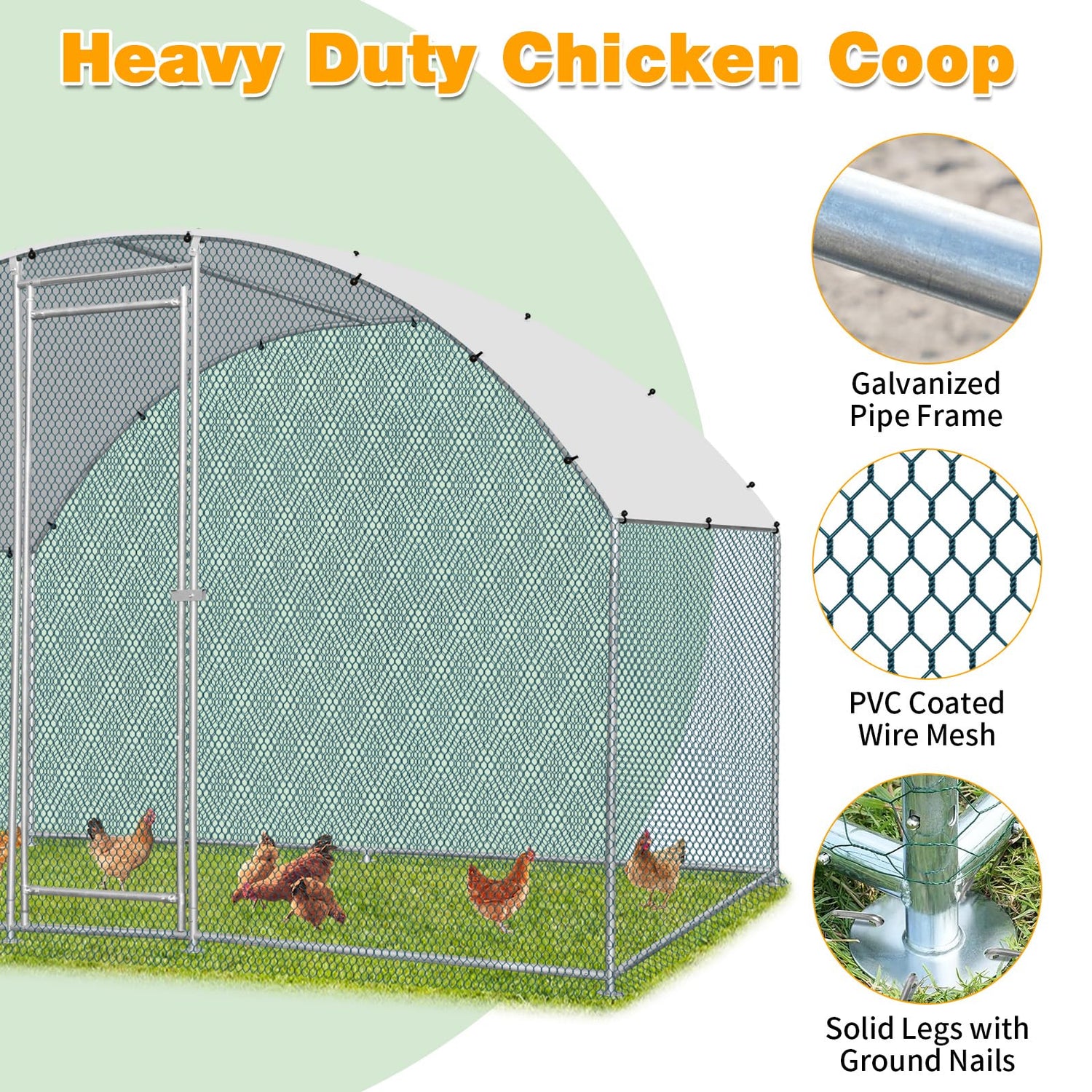 VINGLI Large Metal Chicken Coop, Spacious Chickens Poultry Cage with Waterproof & Anti-UV Cover, Duck Rabbit Walk-in Chicken Pen Outdoor (6.5 x 9.8 x 6.5 ft)