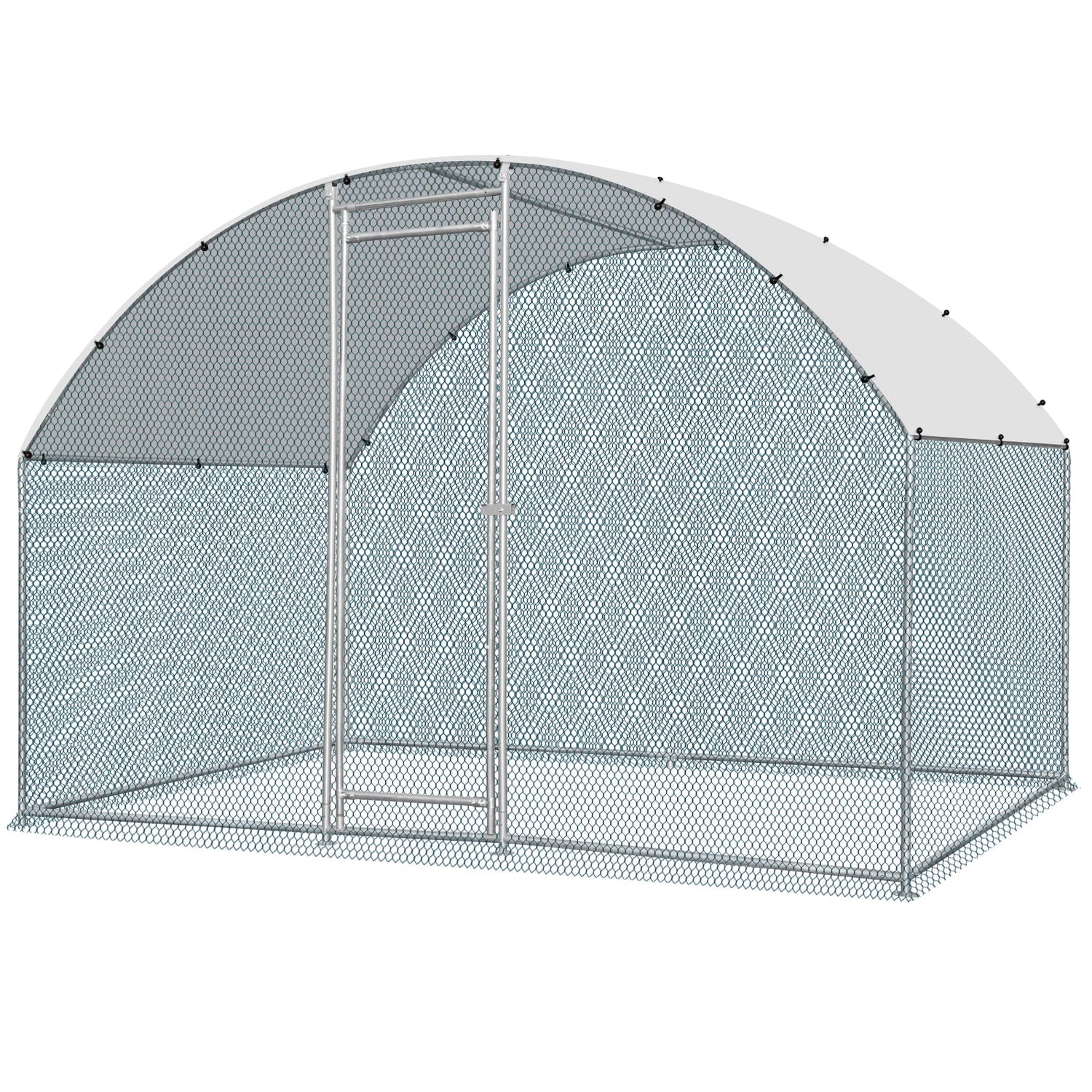 Details: Give your poultry a spacious and secure outdoor home with this large walk-in metal chicken coop. Our large chicken coop provides you with plenty of space to hold 6-10 chickens in each cage. Any small or medium-sized animal can be properly arranged here. This cage ensures long-lasting protection for chickens, ducks, geese and rabbits. Lockable security doors make it more convenient for you to access, feed and clean. Designed with a sloped arc roof and the waterproof PE cover, this poultry coop prevents water and debris buildup, keeping your pets comfortable in any weather. Easy to assemble with included hardware and a user-friendly manual, this poultry cage is perfect for farms, backyards, and even garden enclosures.
