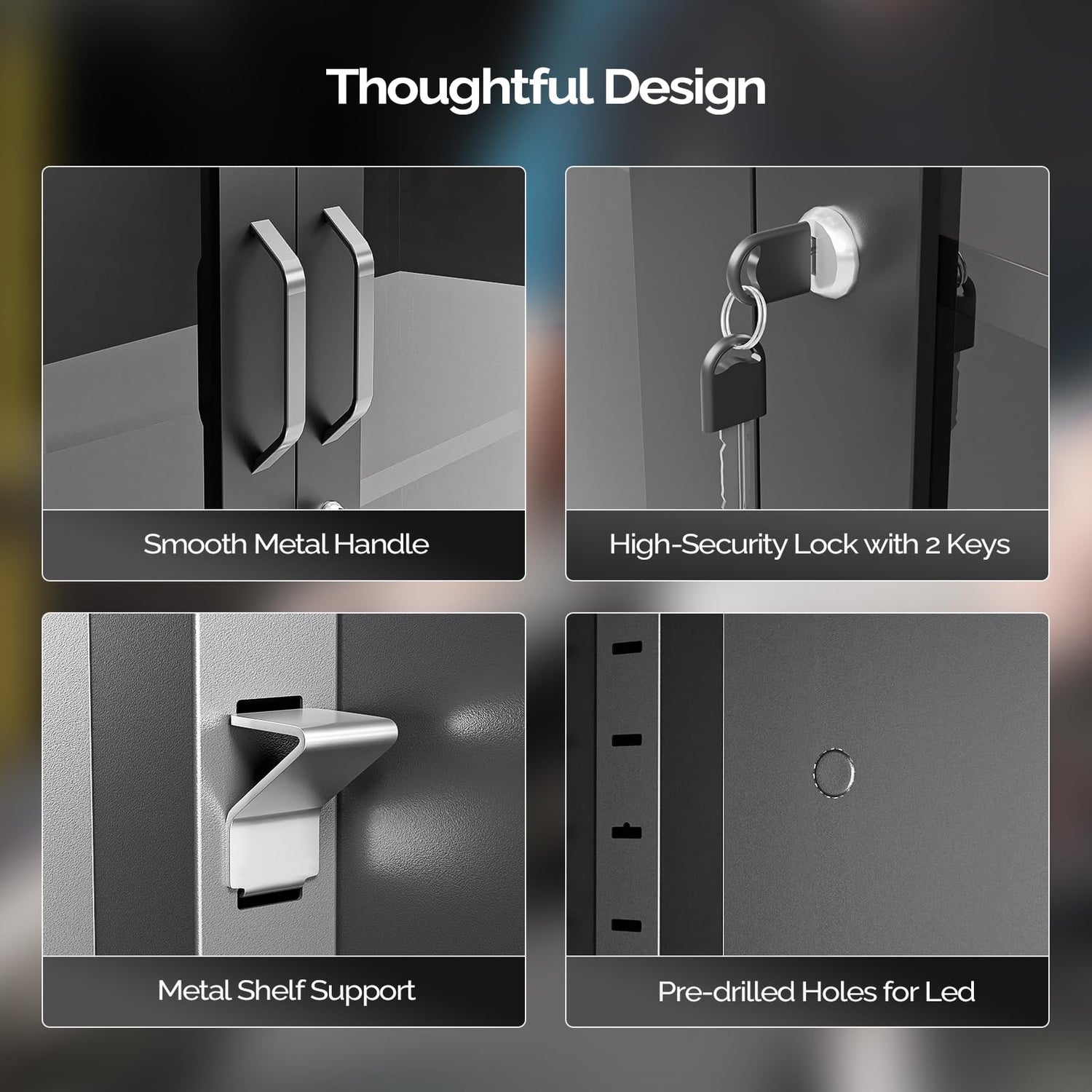 - 【Secure Locking System】Equipped with locking mechanism and 2 keys, this cabinet ensures your items are secure and protected from unauthorized access, adding an extra layer of safety.