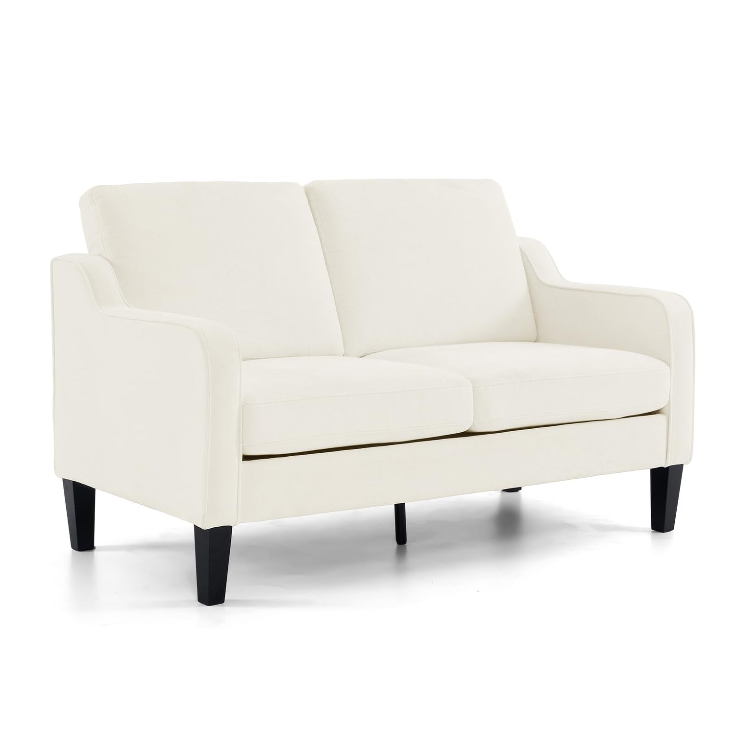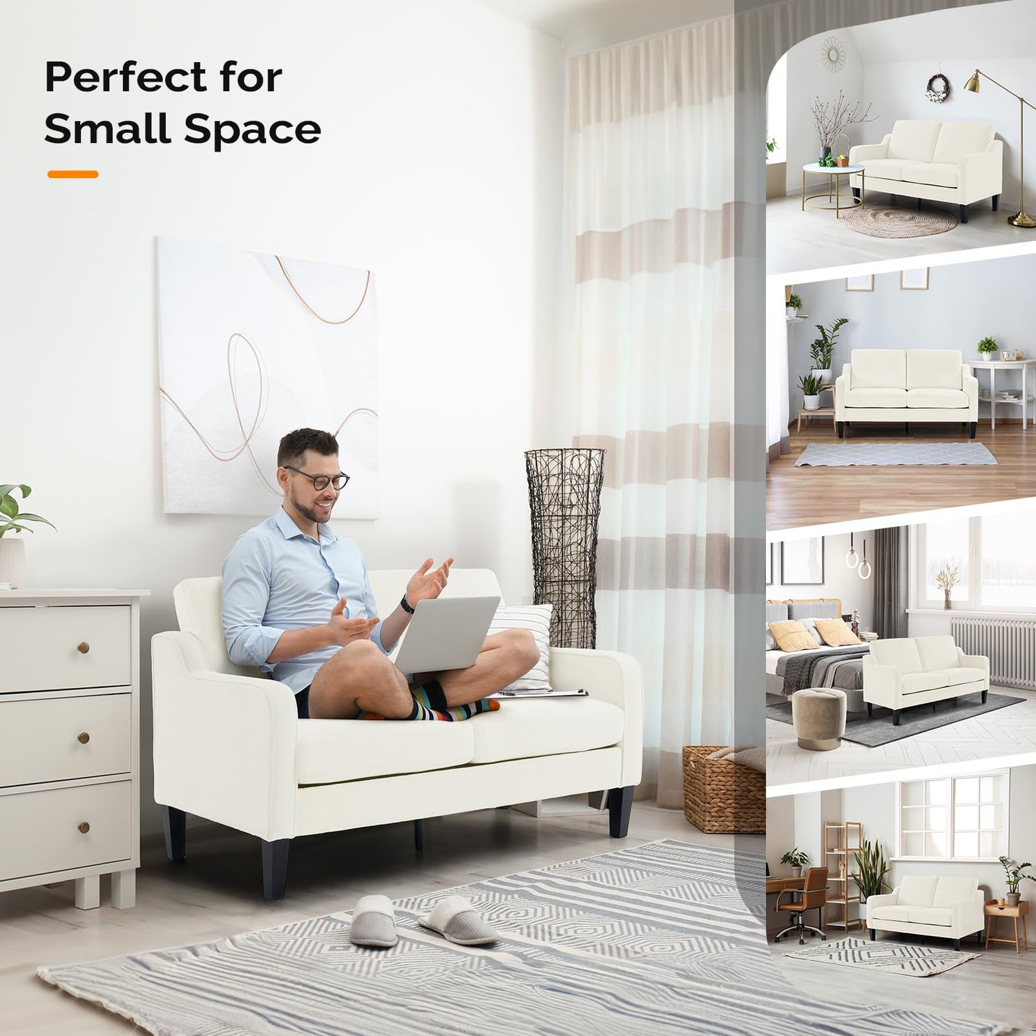 VINGLI Loveseat Mid-Century Modern Loveseat Sofa Couch 53" Wide 2 Seater Sofa Couch Love Seat with Scooped Armrest for Small Spaces, Living Room, Dorm, Bedroom, Apartment (Creamy White)