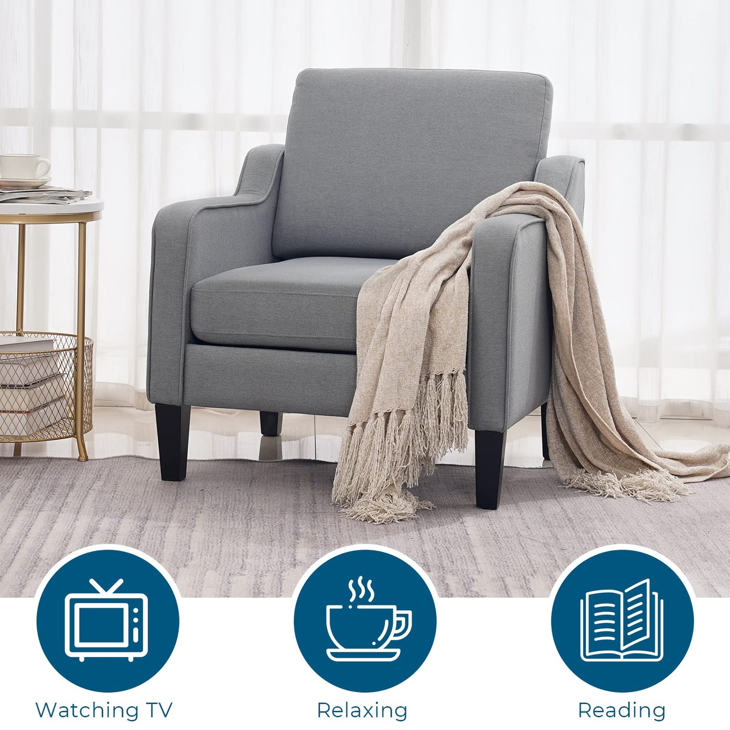 • Quality?Durability?You can always count on our modern accent chair,soft and durable linen fabric,high resilience foam cushions,sturdy metal and wooden frame,they're made to offering great stability and seating support with 380lbs weight limit,ensuring that it will stand the test of time.
