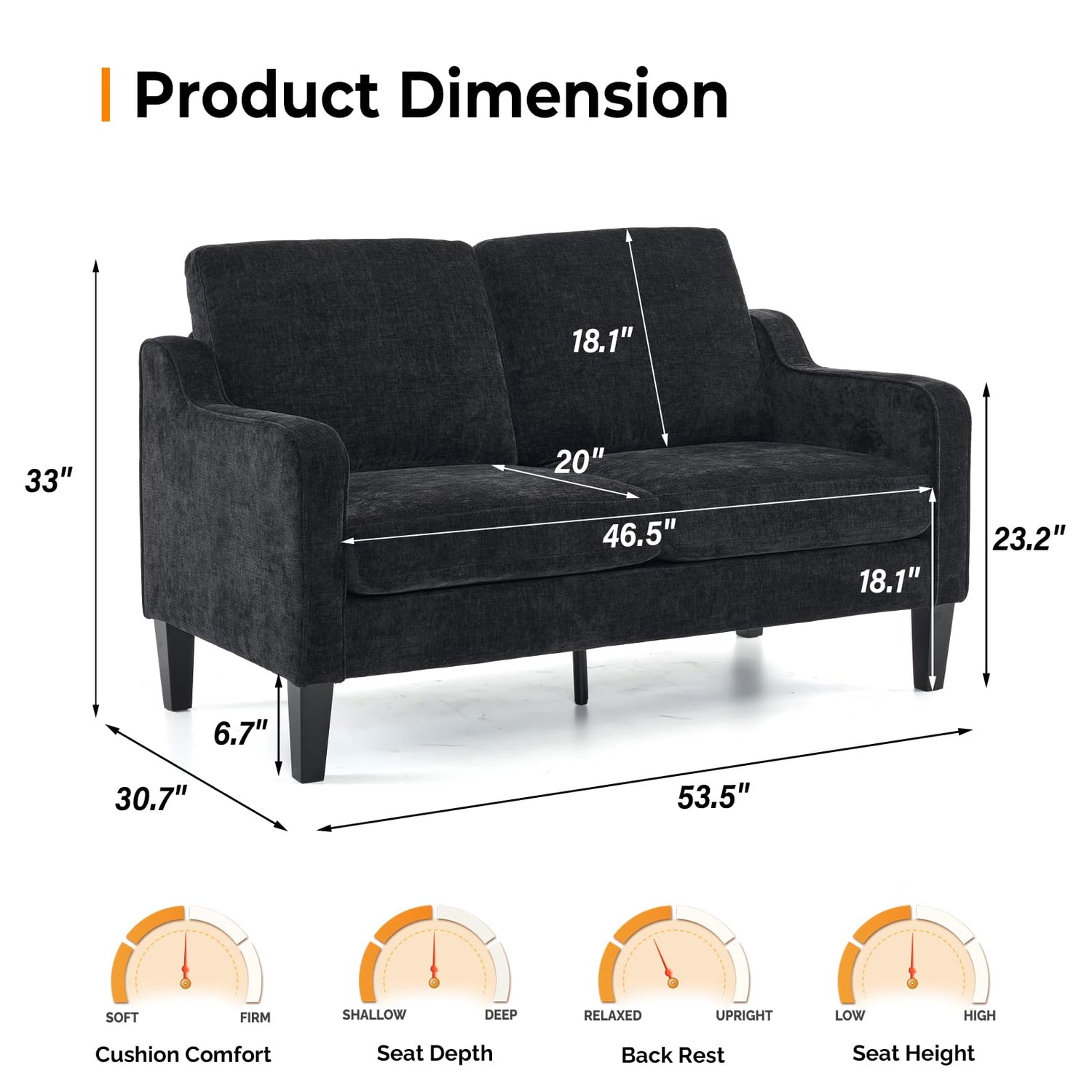 - SMALL SOFA--This compact loveseat, measuring 53.5" W x 30.7" D x 33" H, is an ideal choice for small spaces such as small studios, college student apartments, or small rooms. It is also perfect for staging a house for sale or rent, as well as for house staging, setup, or photography purposes.