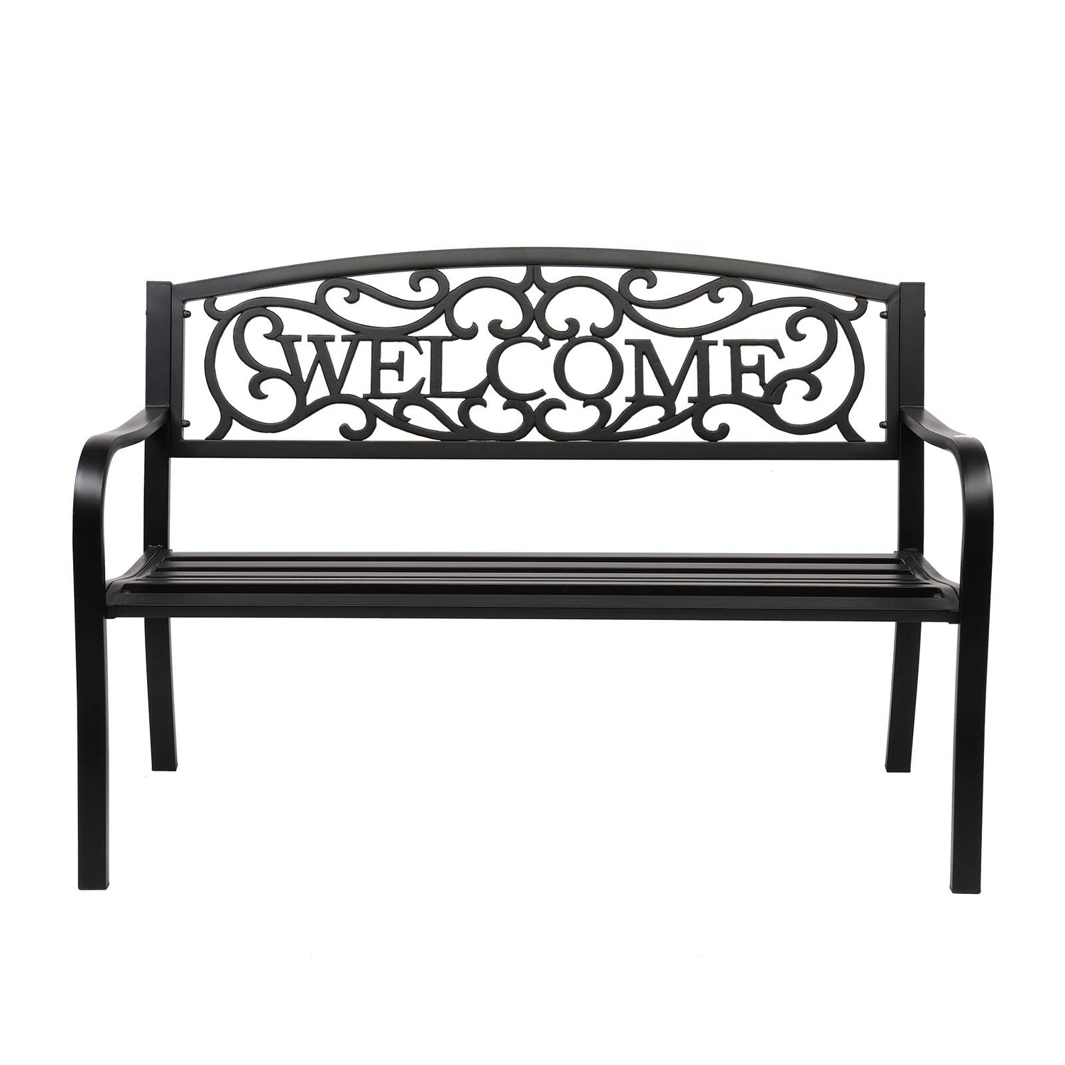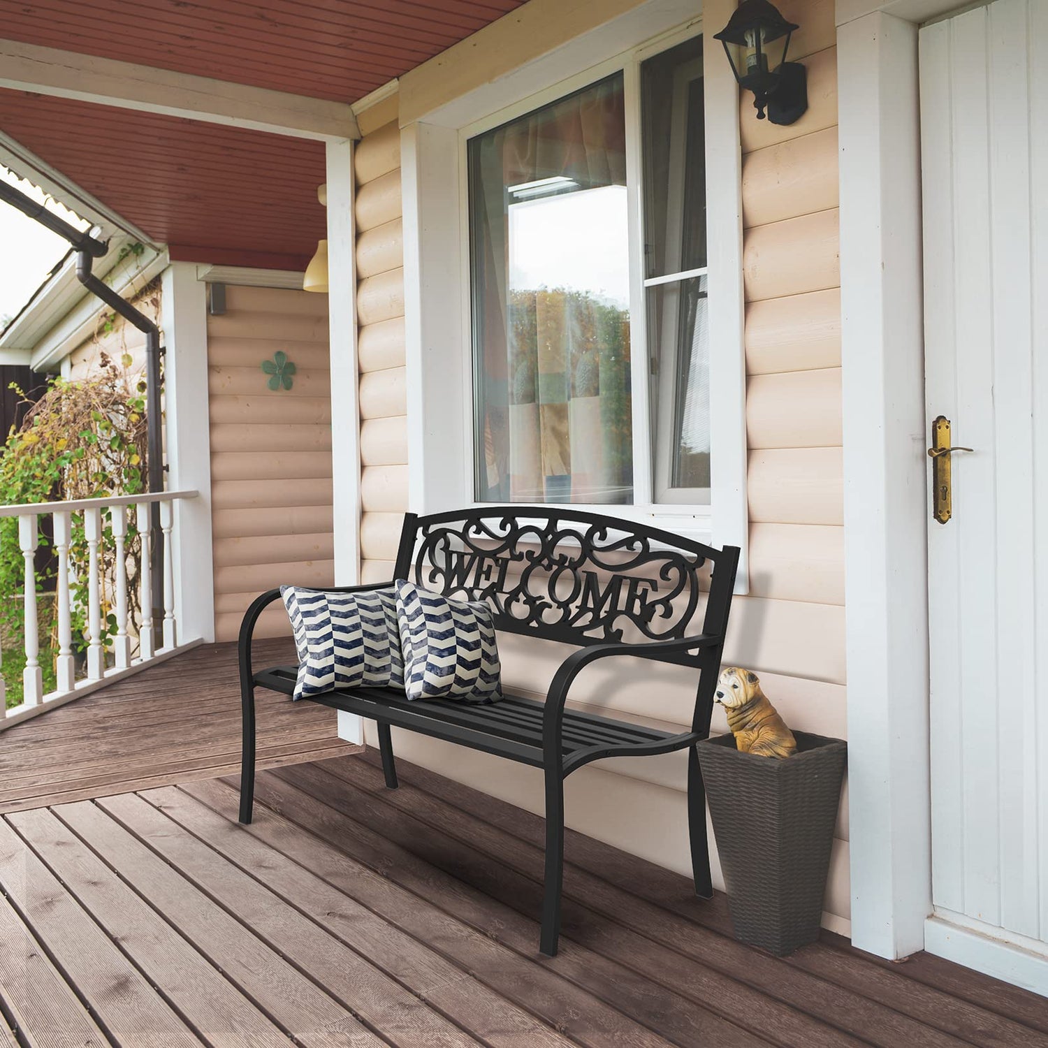 - POWER-COATED STEEL FRAME: The welcome outdoor bench features a durable steel frame with a weather-resistant powdered coating, making it suitable for both outdoor and indoor use