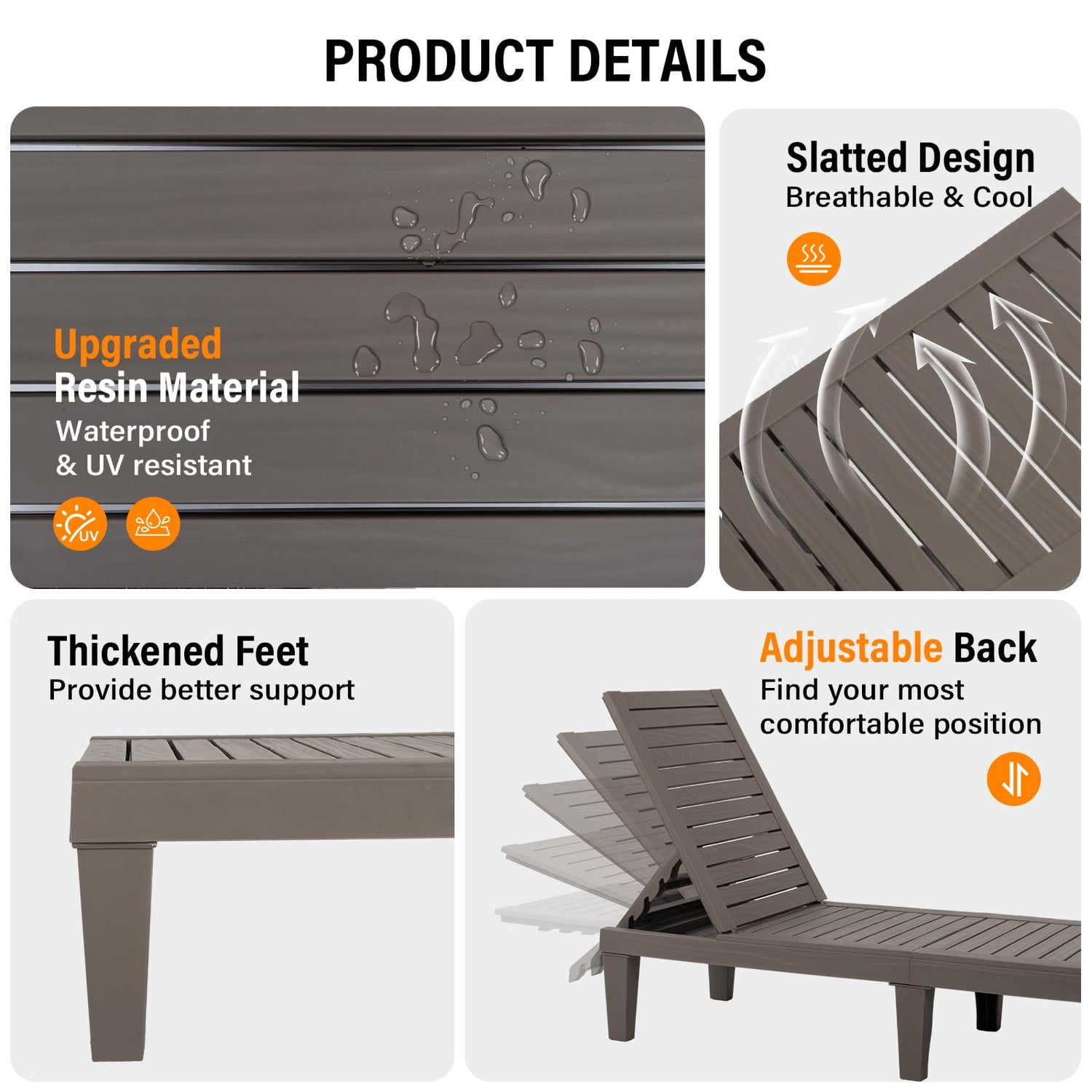 - 【Easy to Assemble and Carry】Waterproof chaise lounger is designed with a plug-pin installation that can be completed in three steps: attach the seat, then insert the legs and press them together, and finally insert the backrest without any tool