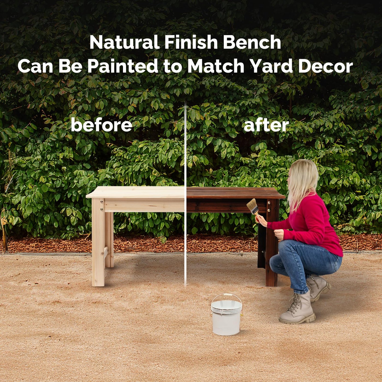 - 100% Fir Wood: Crafted from 100% solid fir wood, this wooden bench outdoor boasts natural weather resistance. Enhanced stability is achieved through thickened legs and reinforced underside wood strips