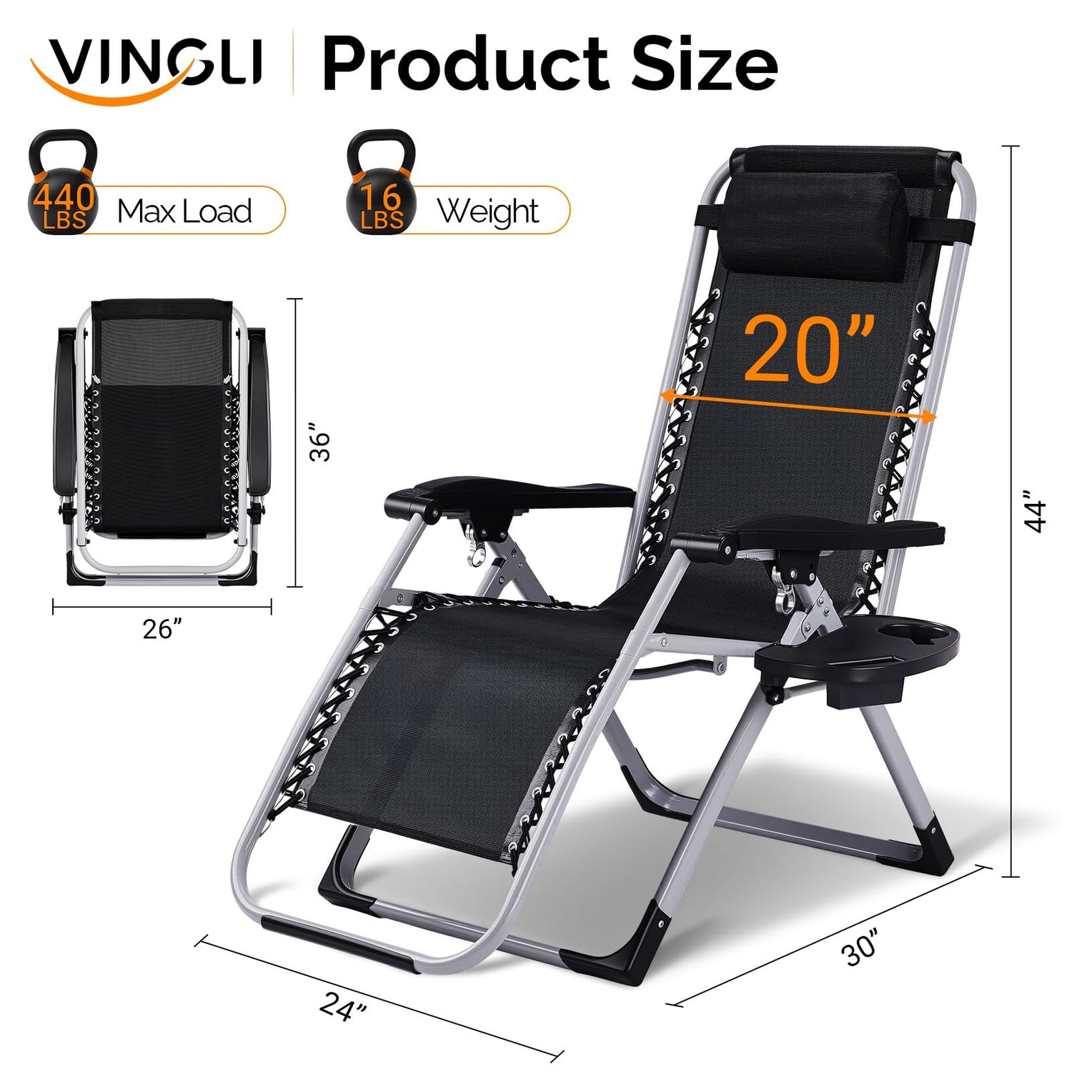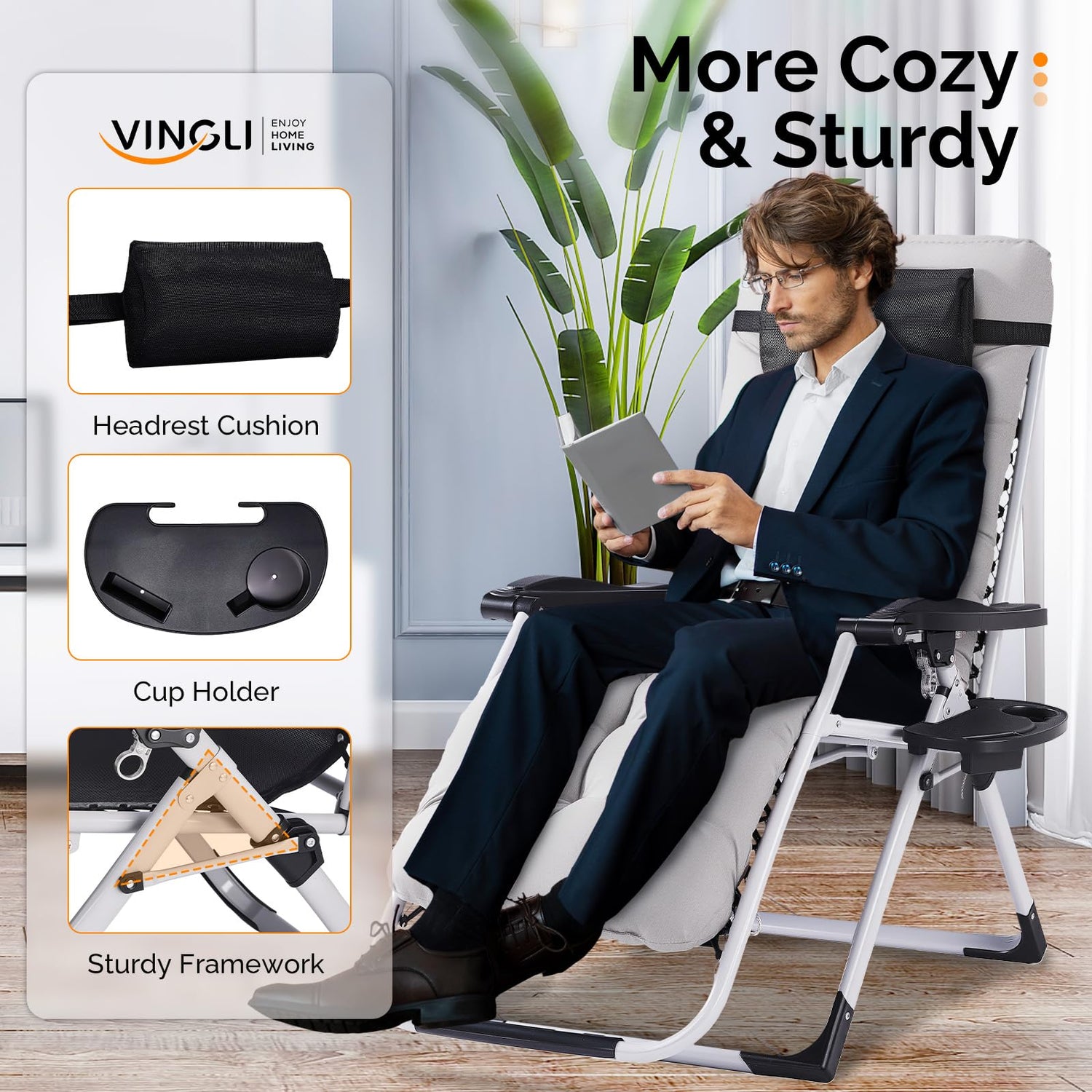 VINGLI Padded Zero Gravity Chair, Lounge Chair with Removable Cushion & Tray, Folding Reclining Patio Chairs, Recliner Chair for Lawn,Indoor and Outdoor