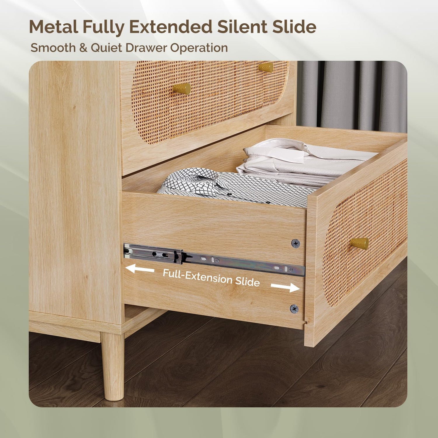 - 【Chic Boho Chest of Drawers】The use of natural wicker in the elliptical-shaped drawer front panel and round metal handles adds a touch of elegance and softness to the overall design, making the rattan drawers chest a perfect addition to any bedroom decor.