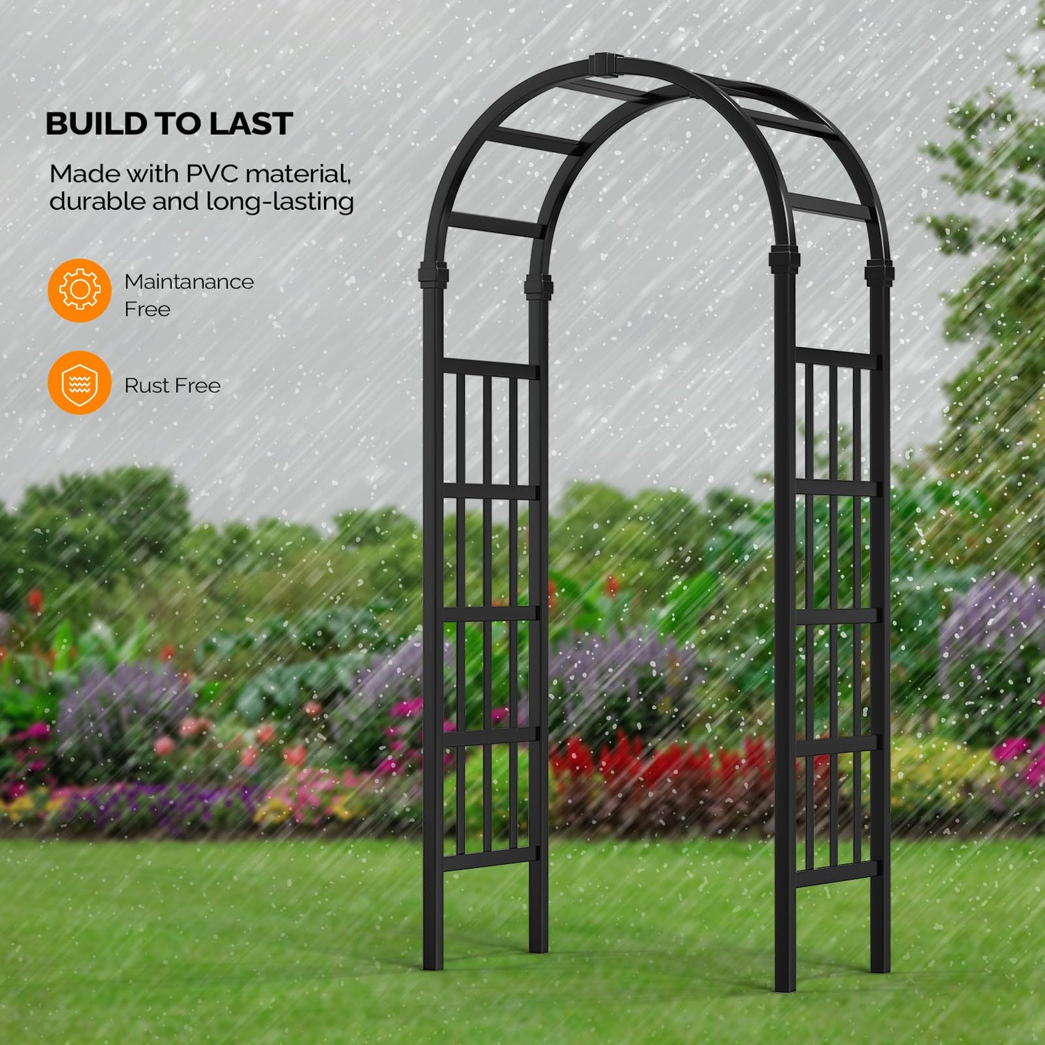 VINGLI Vinyl Garden Arbor, PVC Wedding Arch for Ceremony Party, Garden Trellis for Climbing Plants Outdoor, Arch Backdrop Stand for Garden, Backyard, Lawn (Black)