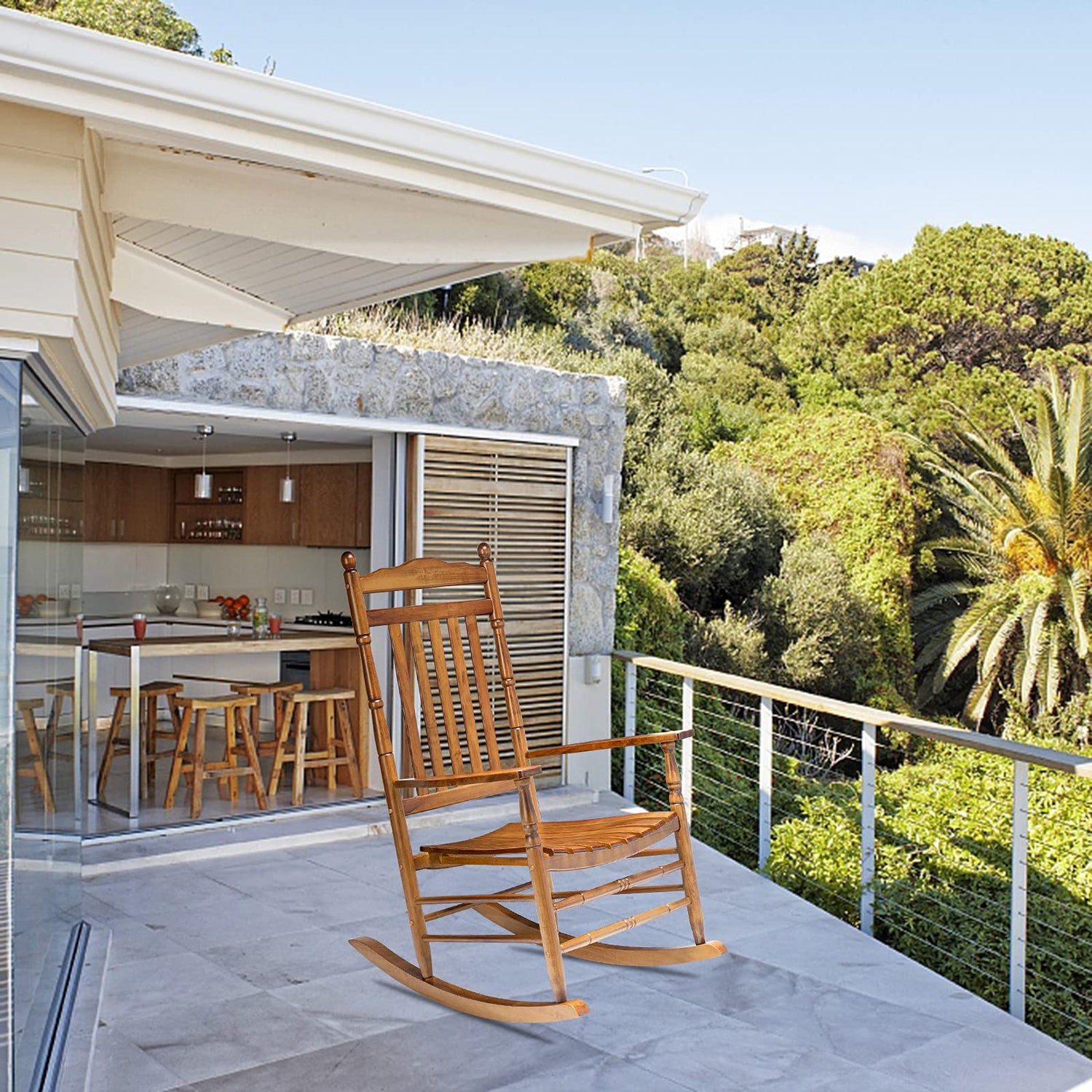 VINGLI Wood Rocking Chair Outdoor with 450 lbs Support Relaxing Rocker Solid Wood High Back Seat Reclining Seat for Deck, Garden, Backyard, Porch, Indoor or Outdoor Use, Oak