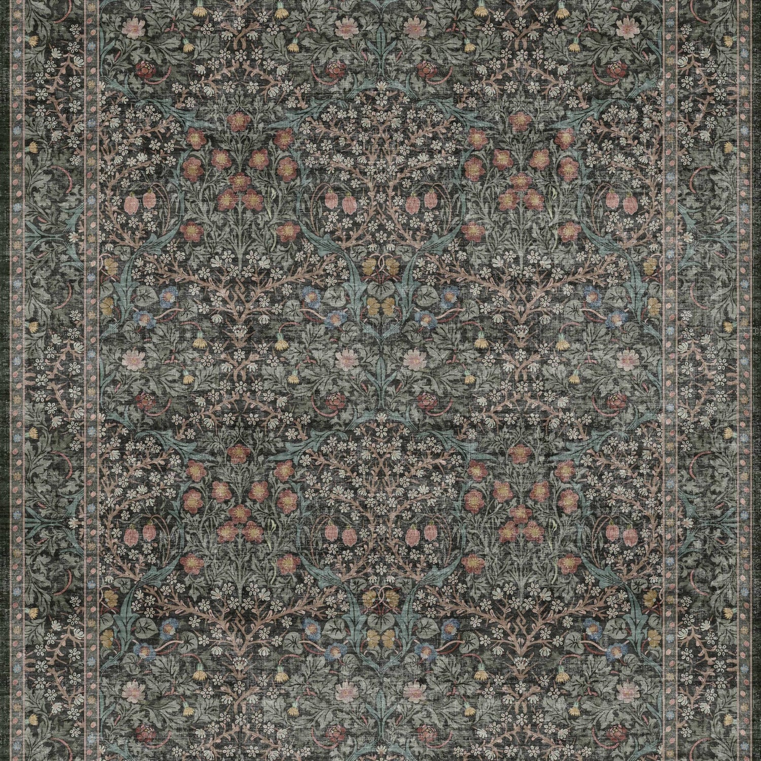 - Vintage Botanical Elegance: Echoing the refined artistry of 19th-century textile traditions, this floor rug showcases a classic botanical design that elevates any space. A rich palette of black, deep emerald, and moss tones flows through intricate floral and oriental motifs, creating a dramatic focal point. Inspired by Victorian aesthetics, the contrast of vivid greens, vibrant reds, and delicate vines adds depth and sophistication, infusing your home with timeless vintage charm