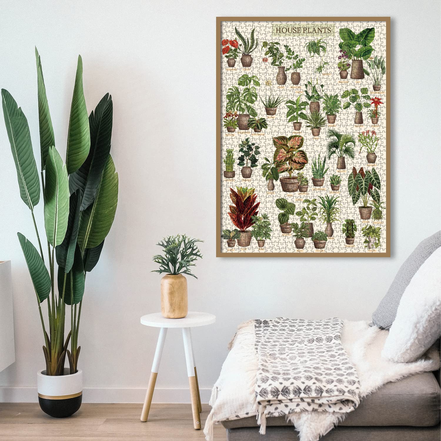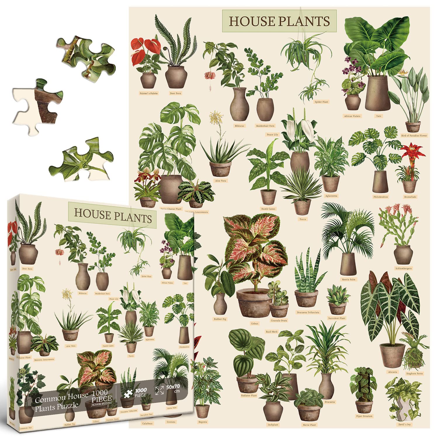 Vintage Houseplant Puzzle 1000 Pieces for Adult, Botany Succulent House Plant Puzzle, 39 Common Indoor Plants Jigsaw Puzzles