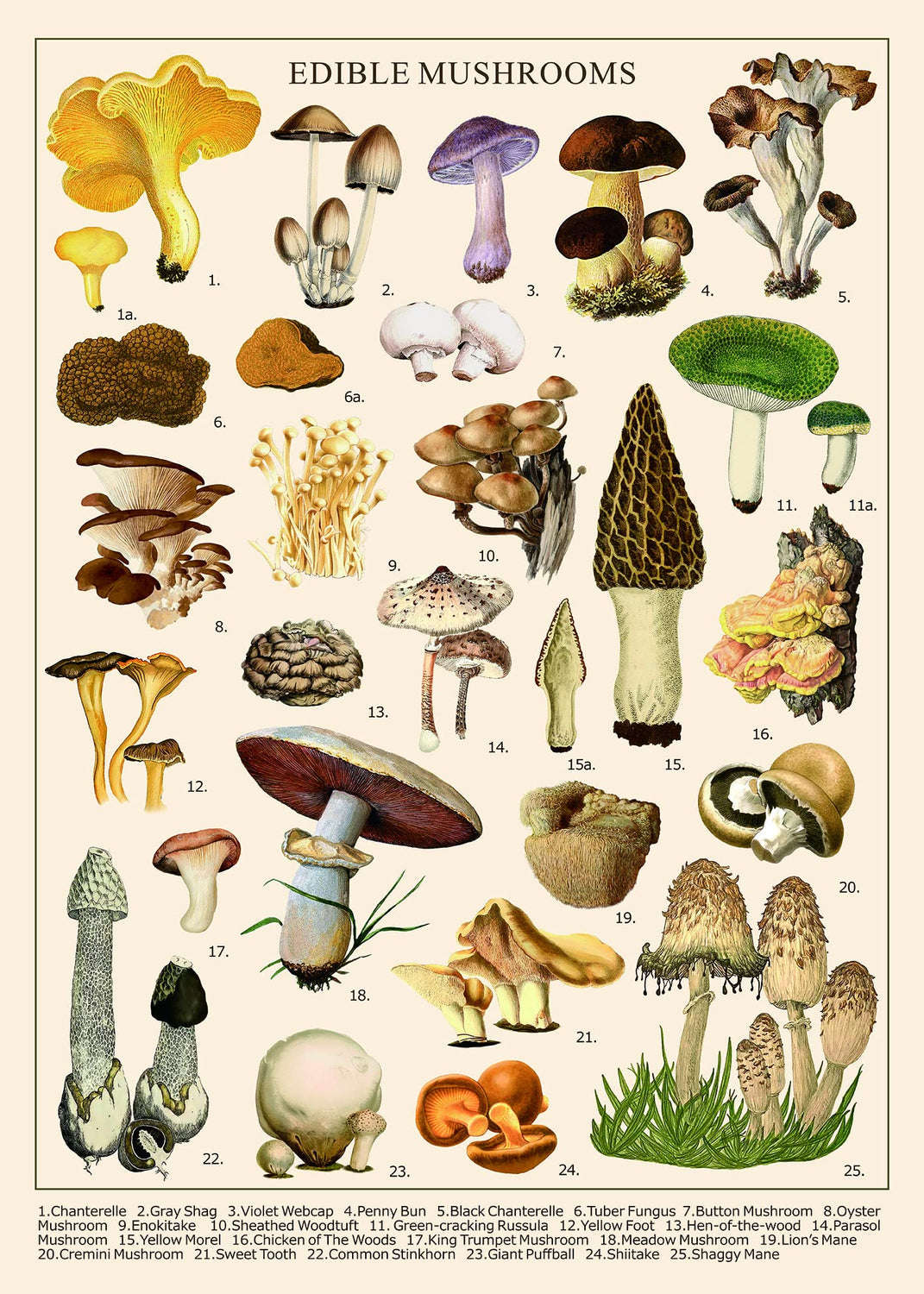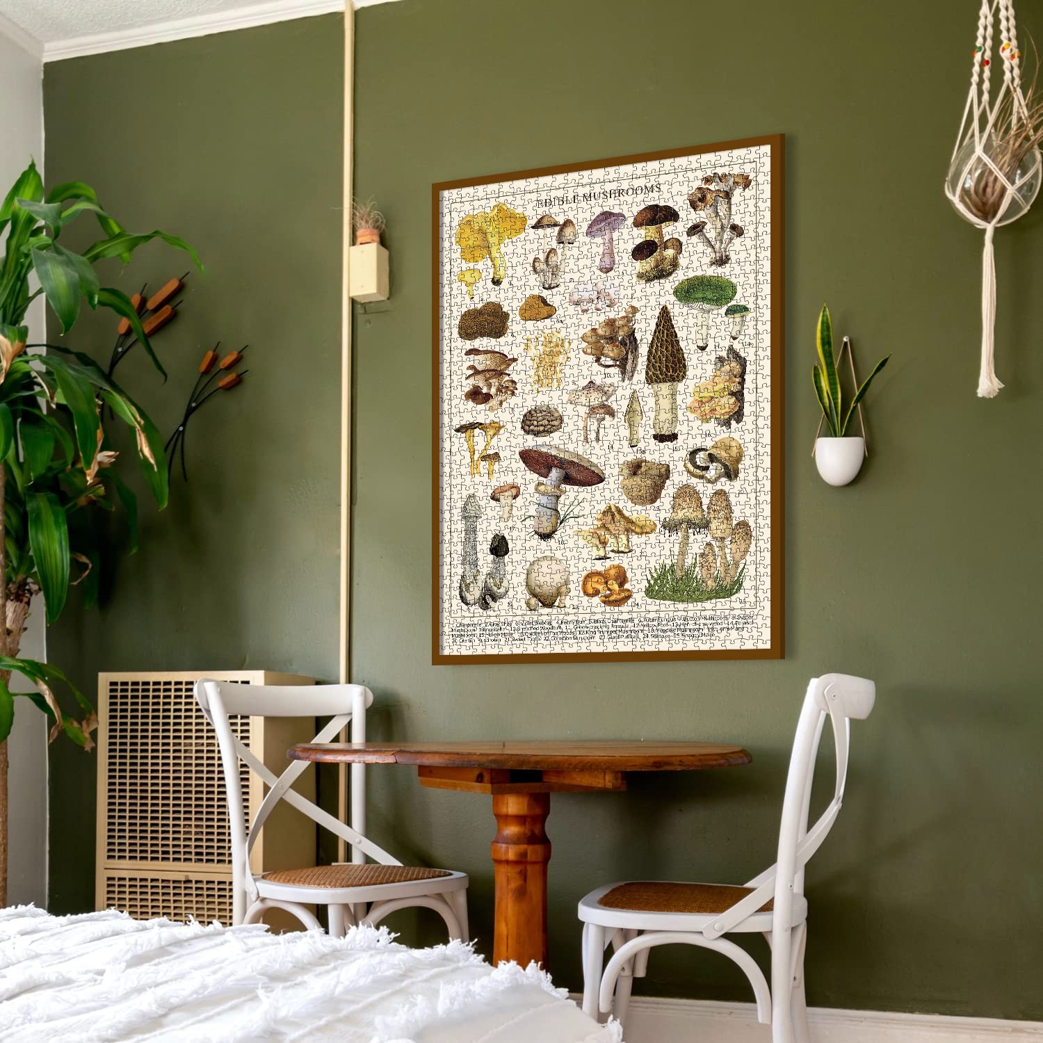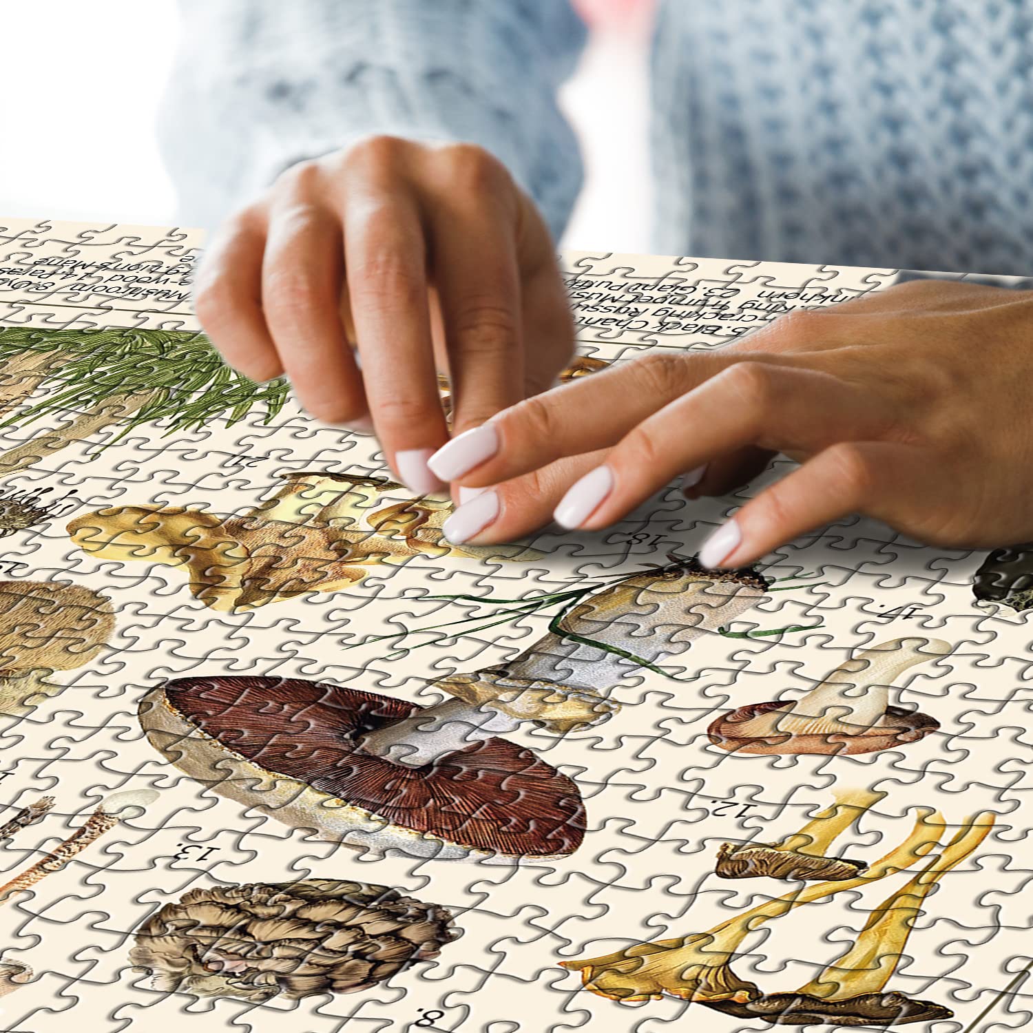 Vintage Mushroom Puzzle 1000 Pieces for Adult, Vintage Fungi Jigsaw Puzzle of 25 Edible Mushrooms, Champignons Plant Puzzle for Mycophile