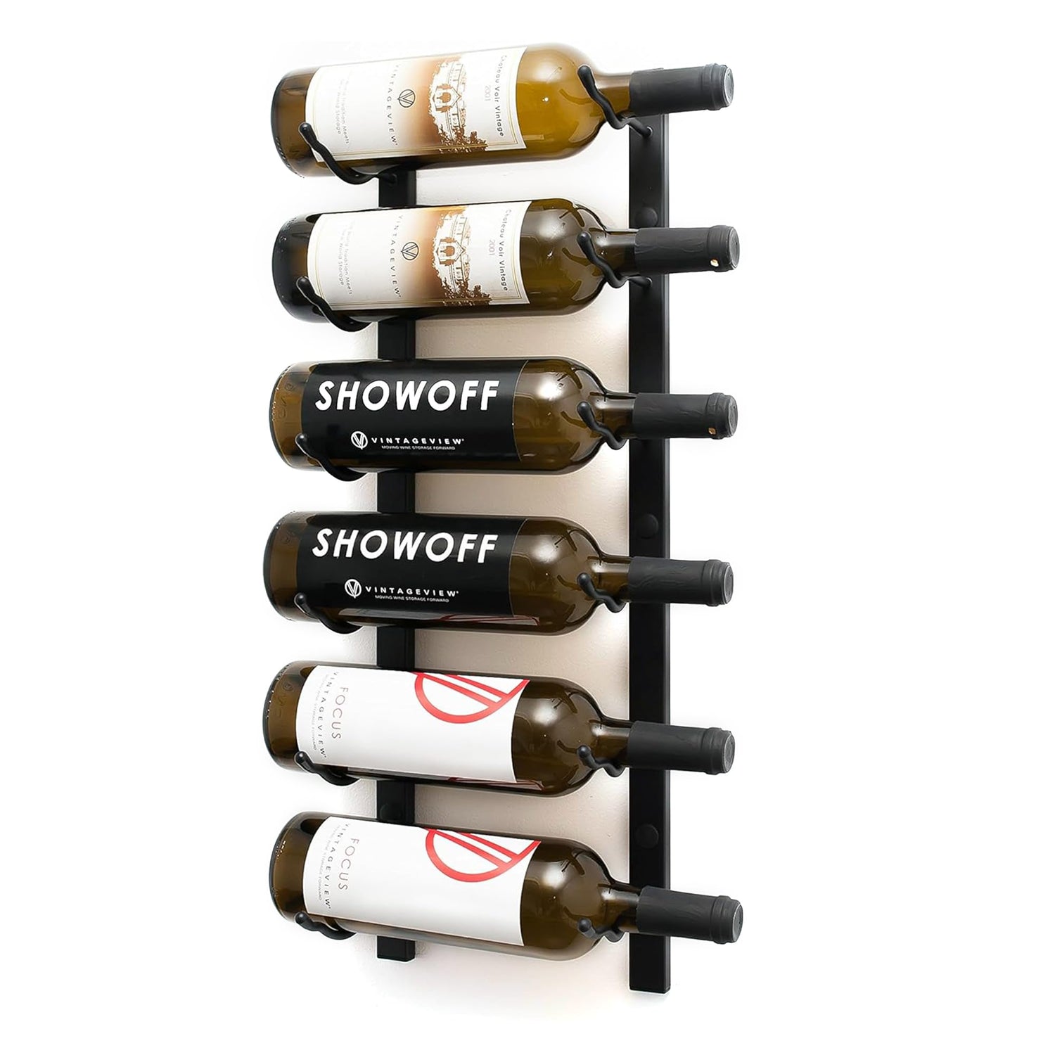 VintageView W Series Wine Rack 2 - Single Depth, Metal Wall Mounted Wine Rack - Modern, Easy Access Wine Storage - Space Saving Wine Rack with 6 Bottle Storage Capacity (Matte Black)