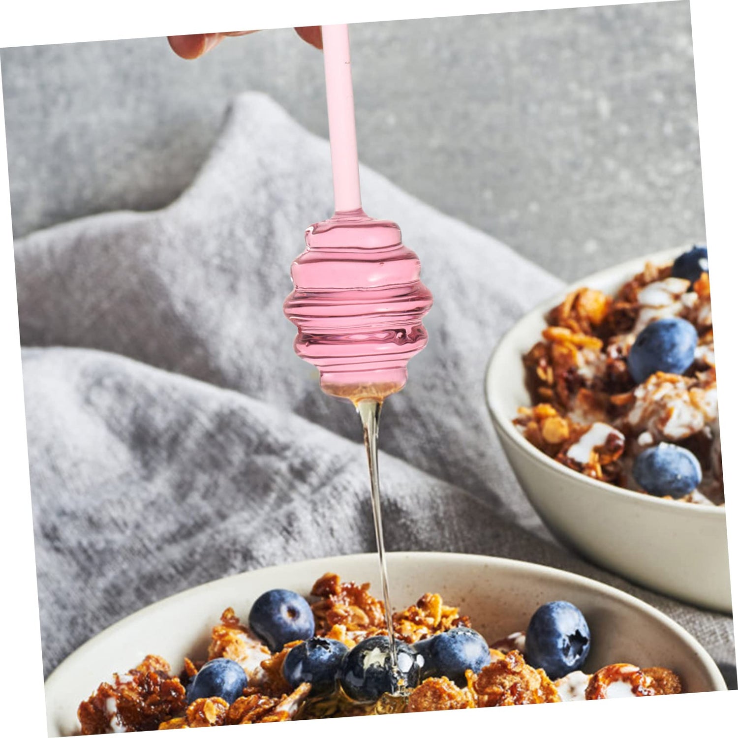 VINTORKY 2pcs Honey Stirrer Syrup Dispenser Honey Spoons for Beverage Stirrer Honey Stirring Spoon Sauce Grill Basting Mop Grilling Honey Dispenser Stick Mini Honey Pot Pink Glass re-usable