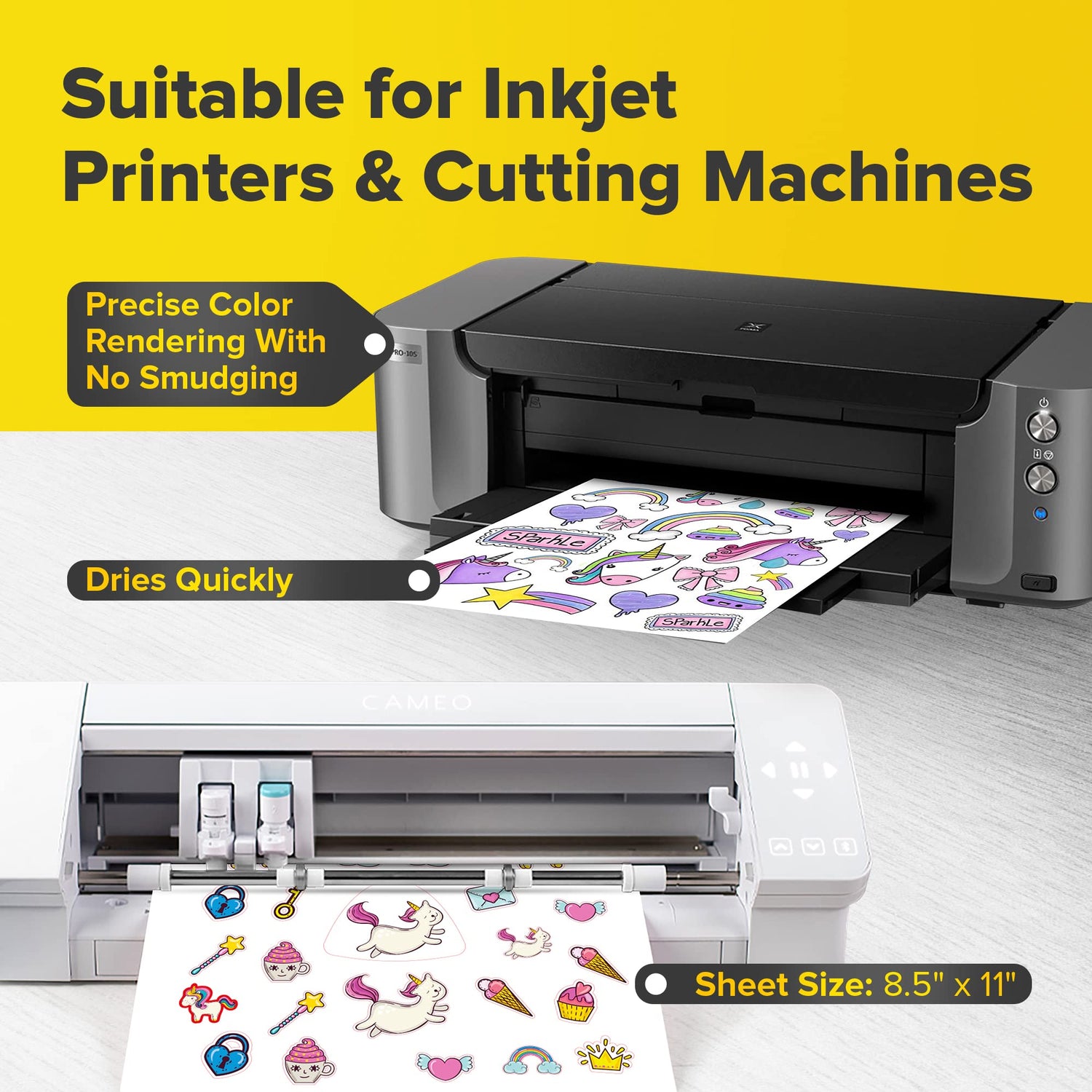 - CUT AND PRINT YOUR WAY- Our vinyl paper works well with most inkjet printers. Plus, it’s easy to cut with scissors or your favorite craft cutting machine. Compatible with Cricut craft cutters, Silhouette, and others, With this wide compatibility, you can get the best out of our vinyl printer paper!