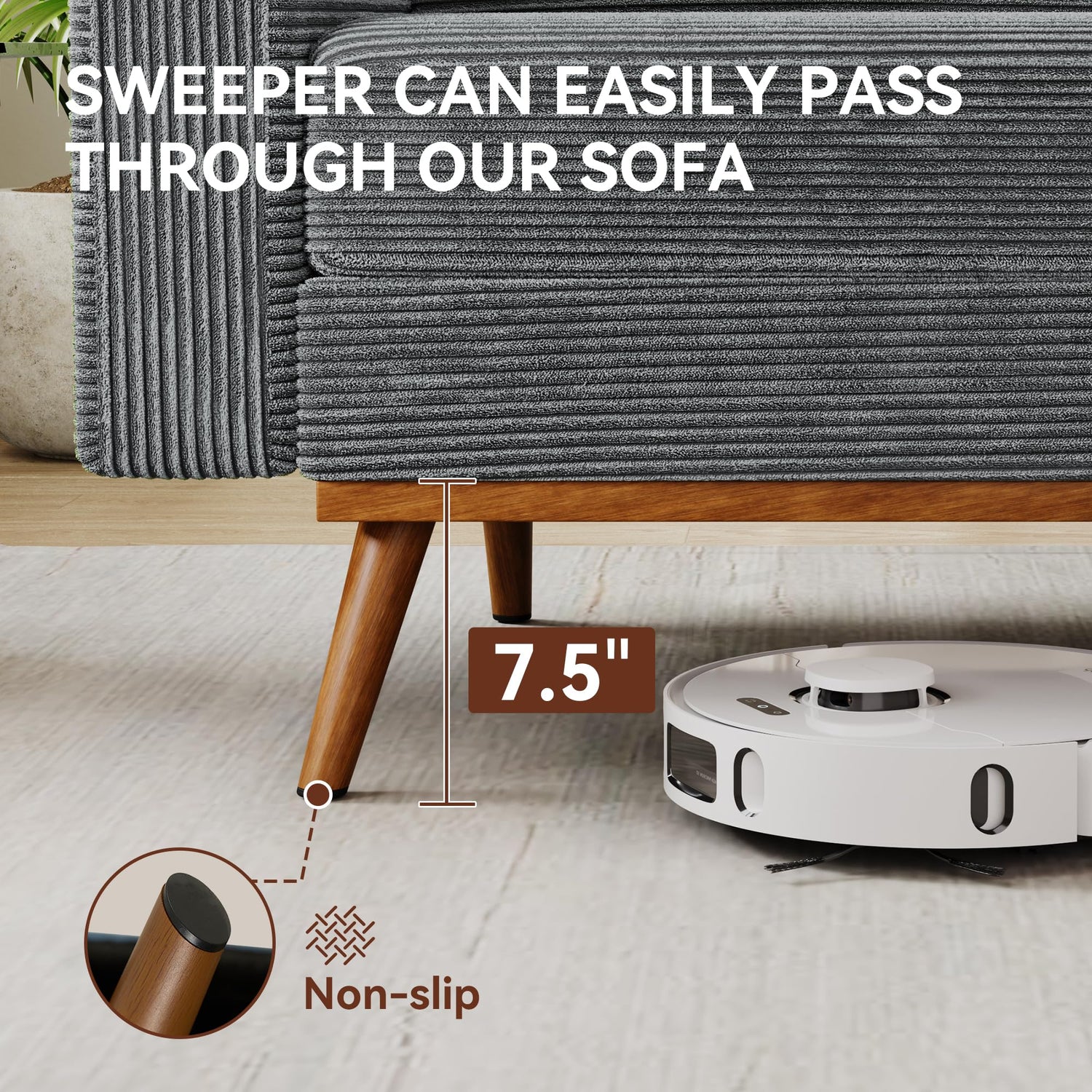 - 【Premium Corduroy Fabric】: This Mid-Century Modern loveseat is crafted from premium grey corduroy fabric. Its elegant lines and distinct texture enhance the retro aesthetic, particularly complemented by the grey, adding both visual appeal and tactile delight. The corduroy feels soft to the touch, while offering enhanced durability, stain resistance, and fade resistance. The luxurious appereance of this loveseat can make it your bright life partner.