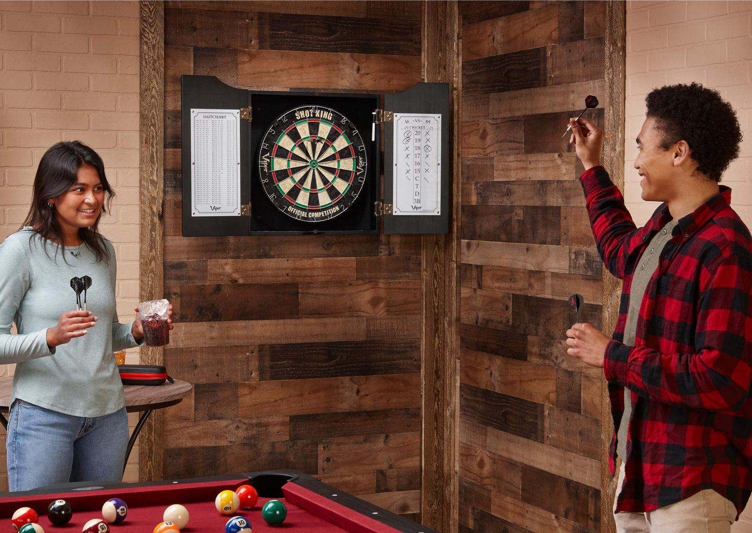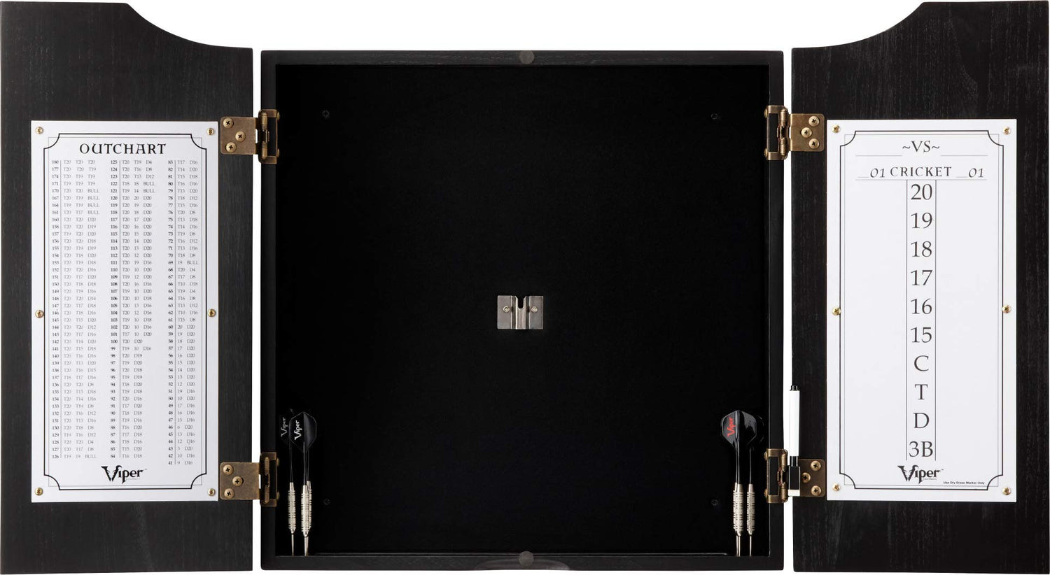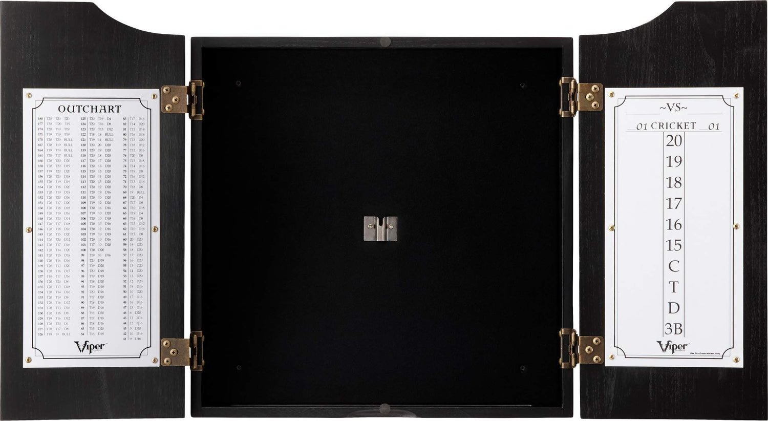 Viper by GLD Products Hudson Solid Wood Cabinet for Sisal/Bristle Steel Tip Dartboard with Dry Erase Scoreboard and Out-Chart, Black Finish