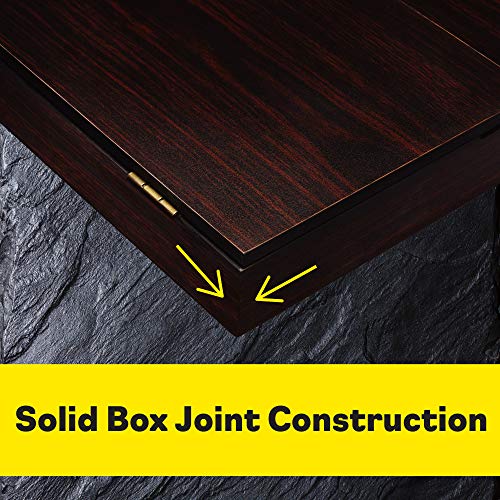 - Wood construction with patina bronze hinges and finished with a classic walnut finish to complement the decor of your game room