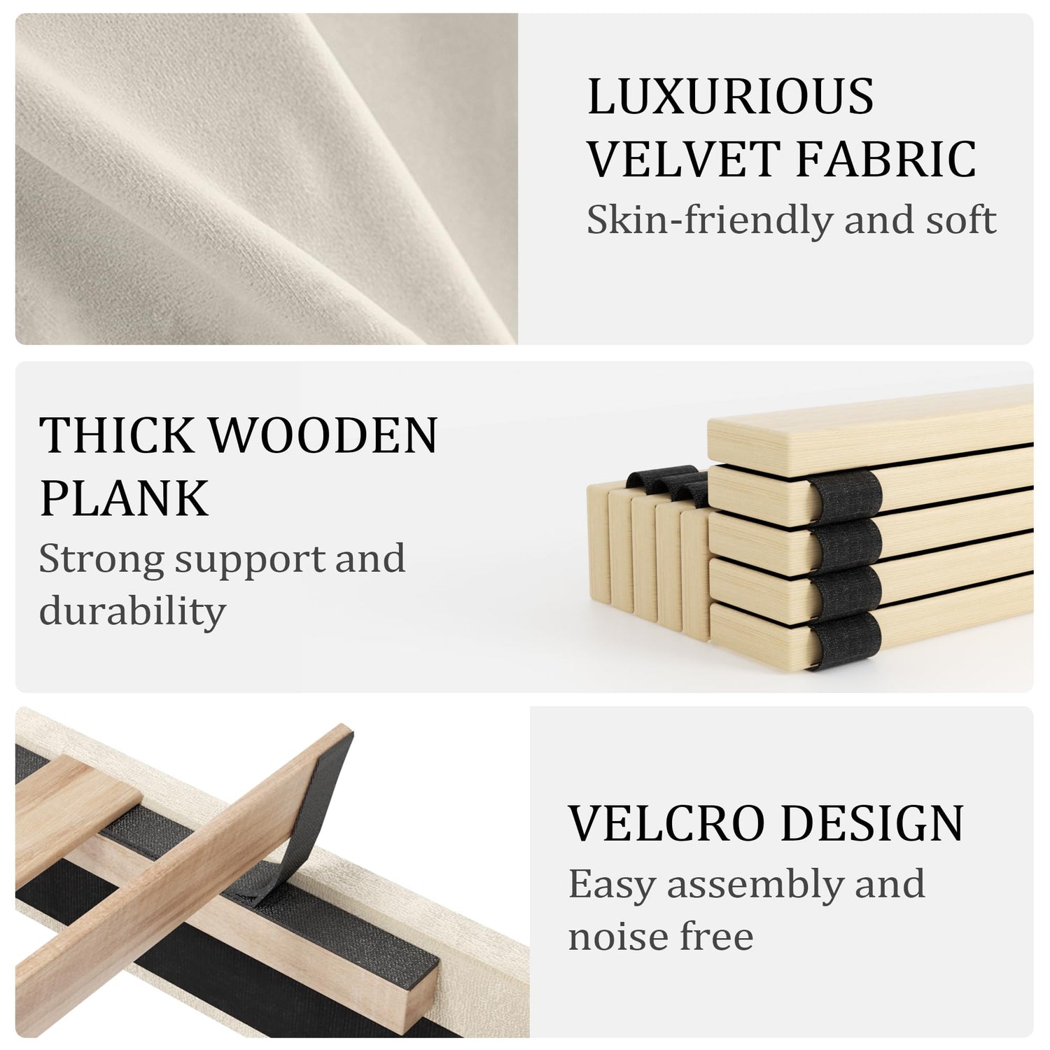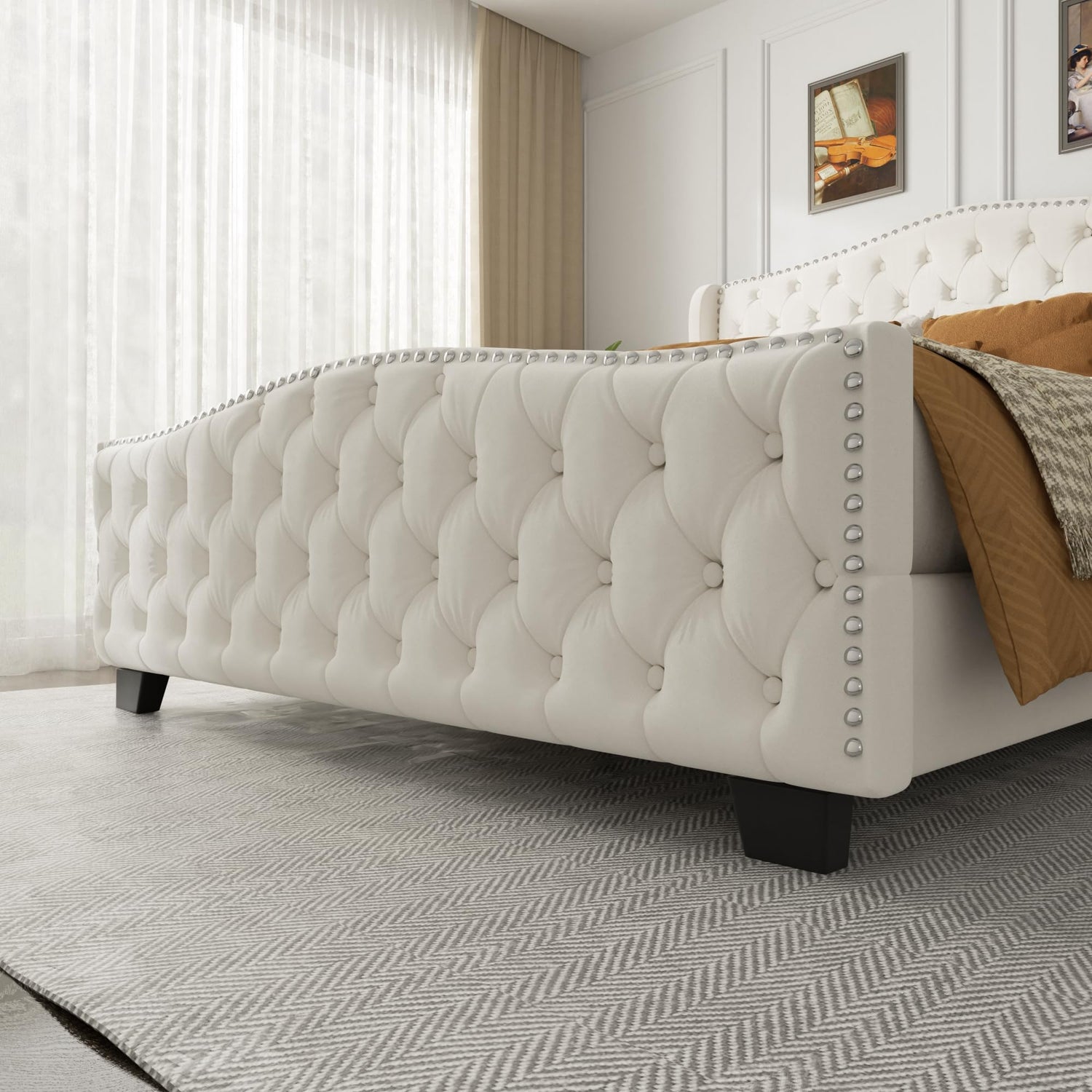 viplov King Size Platform Bed Frame with 51-inch Tall Camelback Headboard & Wingback, Deep Button Tufted Footboard with Nailhead Trim, No Box Spring Needed, Cream