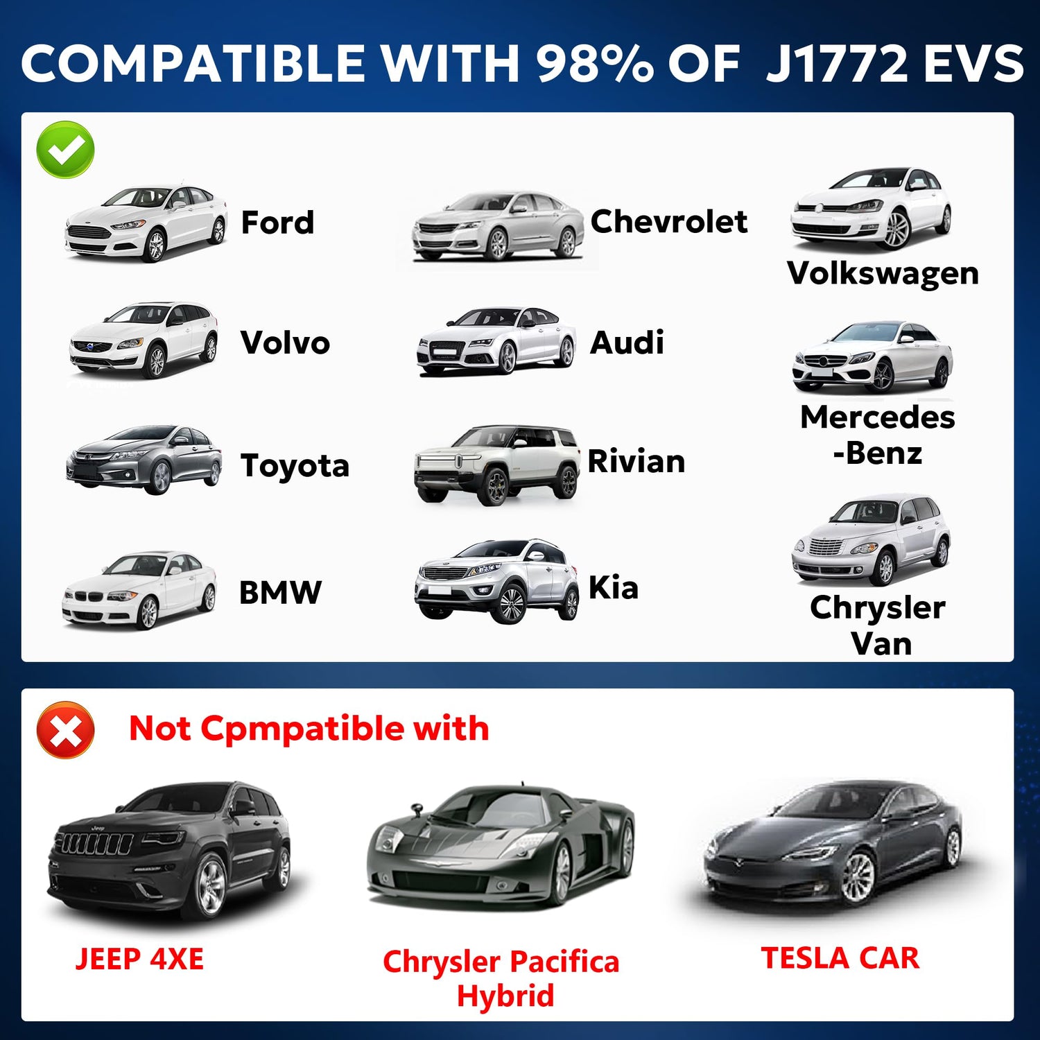 - 【Tips】To avoid unpleasant product experience and misunderstanding, you can contact the local car brand customer service before purchasing to ask whether your car is compatible with our adapter method (Only to J1772).