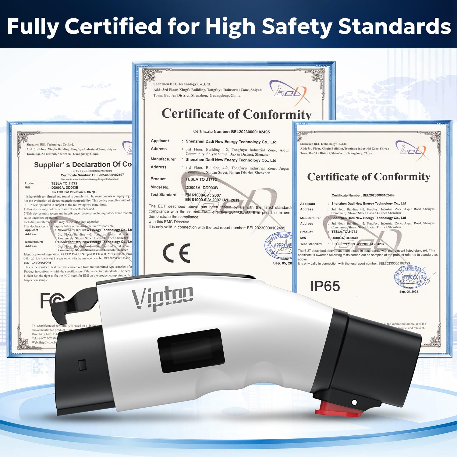 - 【Exclusive Display & Thermal Protection】The VIPTOO Tesla to J1772 adapter features a real-time display for key charging data like temperature, current, voltage, and power, ensuring safe and efficient charging. You can monitor your charging session at a glance, ensuring everything is running smoothly. The adapter is equipped with a temperature control chip that offers over-temperature protection. If the temperature exceeds 80°F, the adapter automatically triggers circuit interruption, protect your vehicle and the adapter from overheating