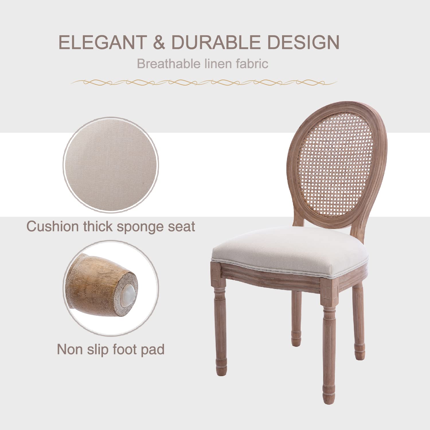 Virabit French Dining Chairs Set of 6, Rattan Farmhouse Upholstered Dining Chairs with Curved Backrest and Beautifully Carved Solid WoodFrame for Living Room, Kitchen, Restaurant