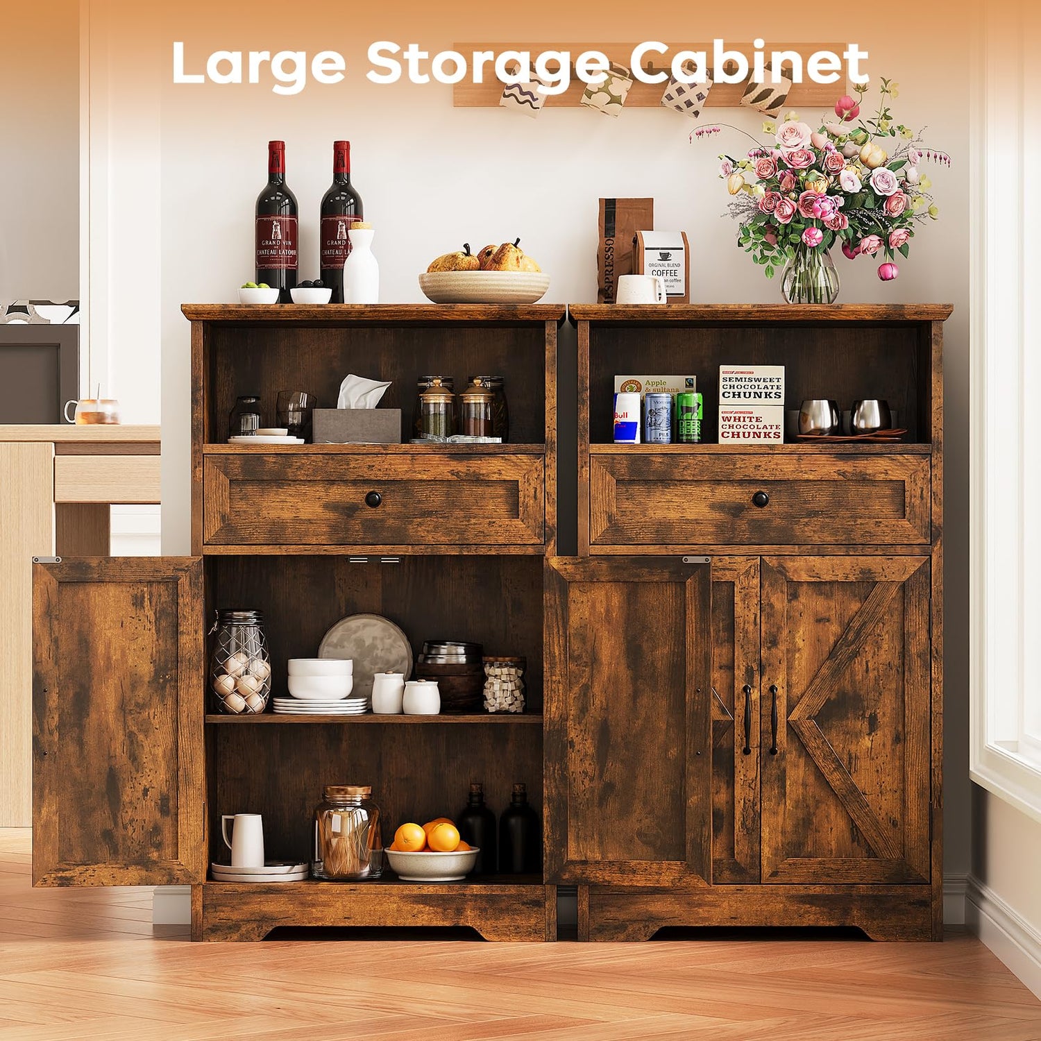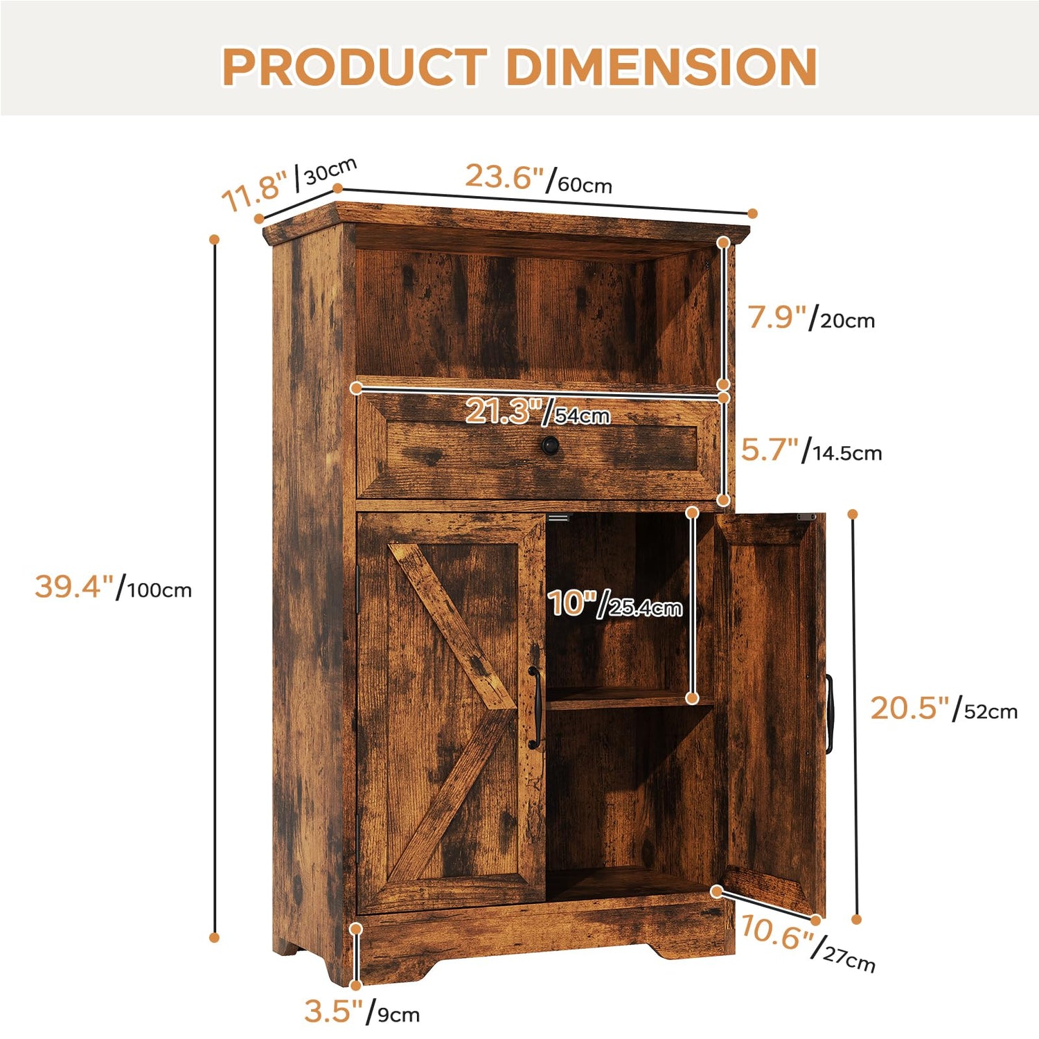 - FARMHOUSE STYLE: This classic barn doors storage cabinet combines rustic character with practical organization, featuring a functional drawer and timeless farmhouse styling. The structured design and minimalist hardware create instant charm while maximizing your storage space