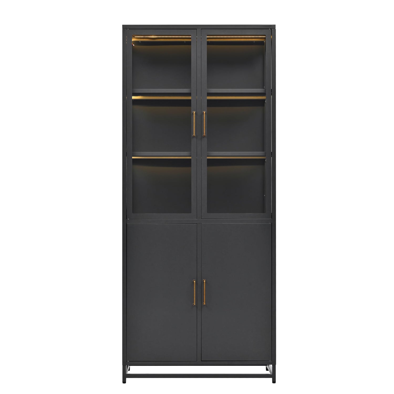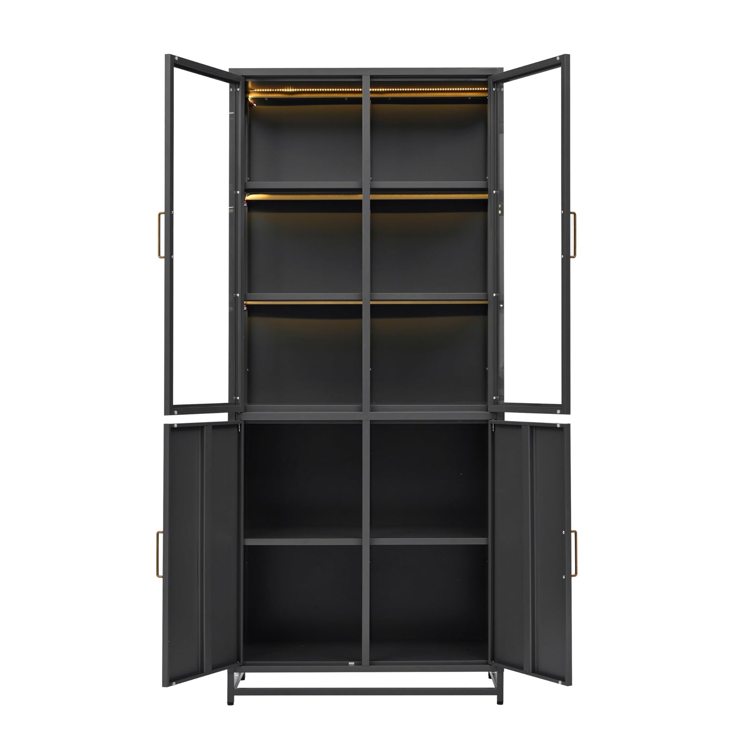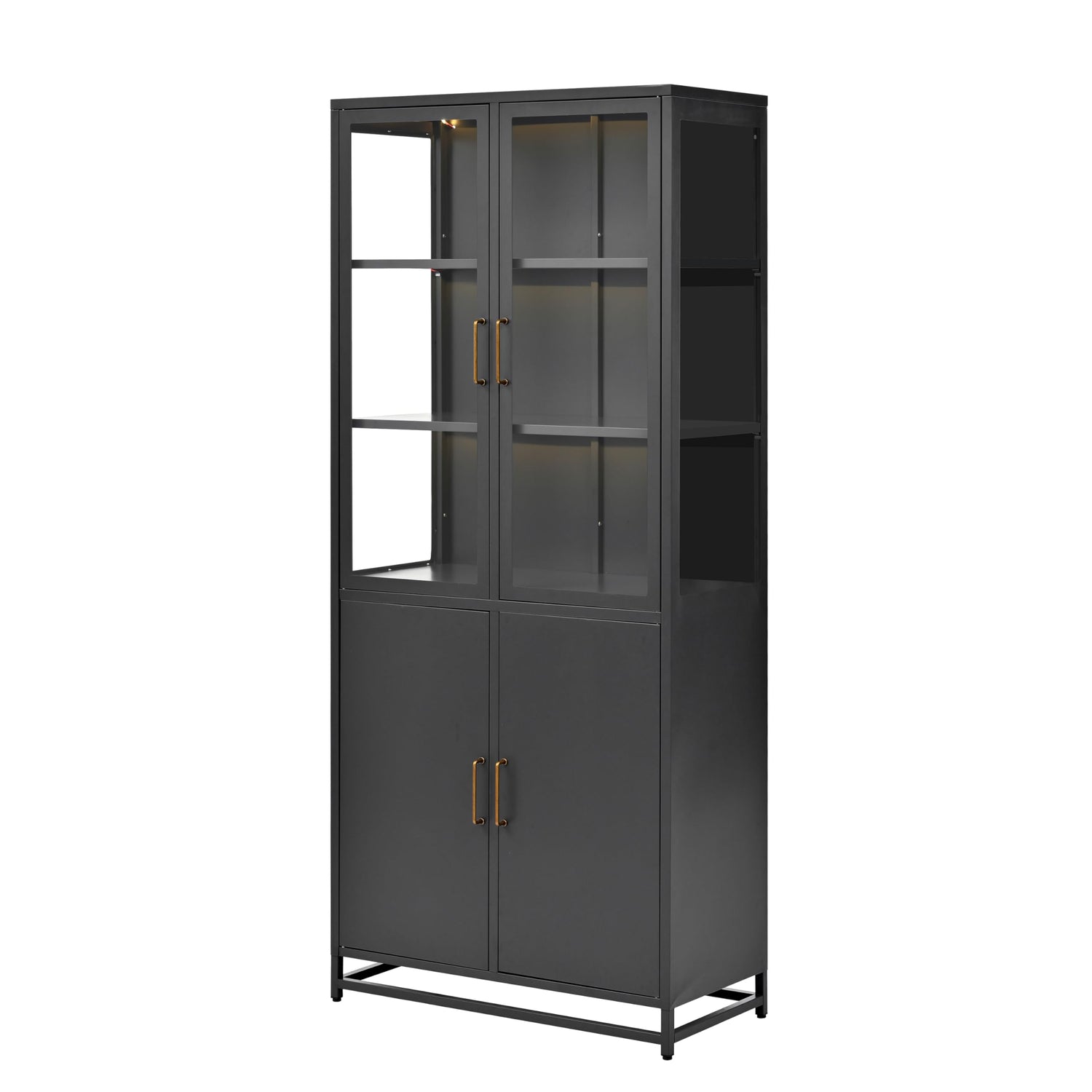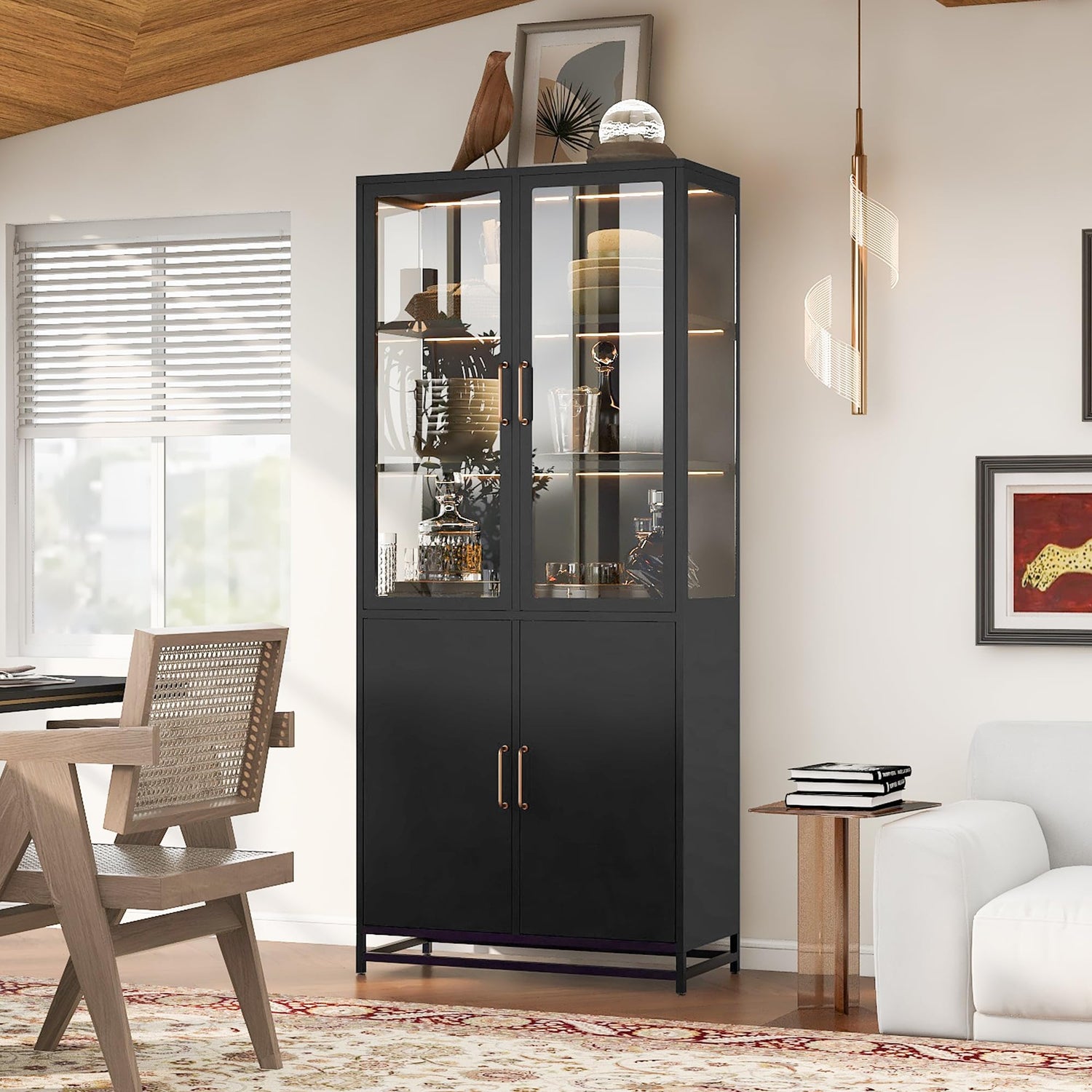 Virubi 76.75'' Tall Display Cabinet with Lights and Storage, Steel Curio Cabinet with Glass Doors, 3-Sided Glass, LED Lights for Hallways, Living Room, Kitchen, Home Decor and Office (Black)