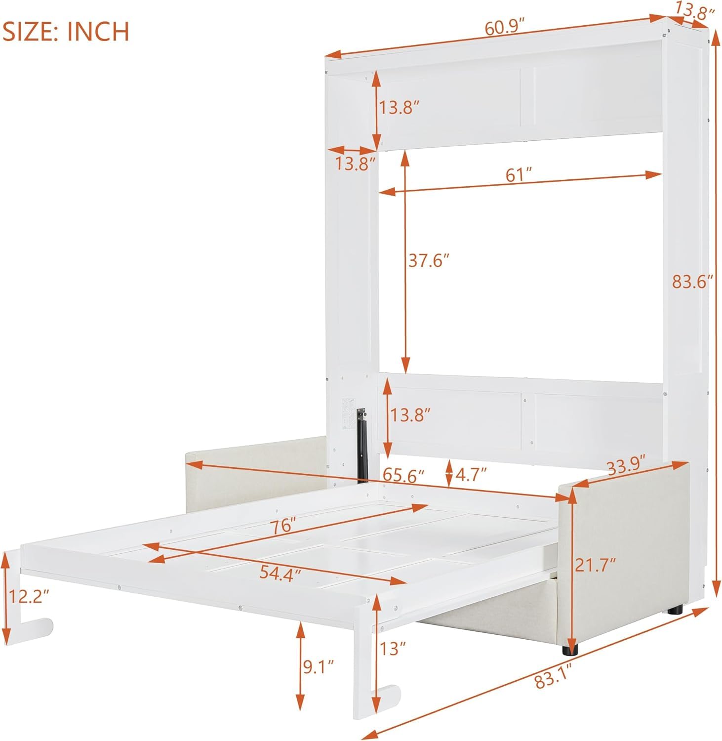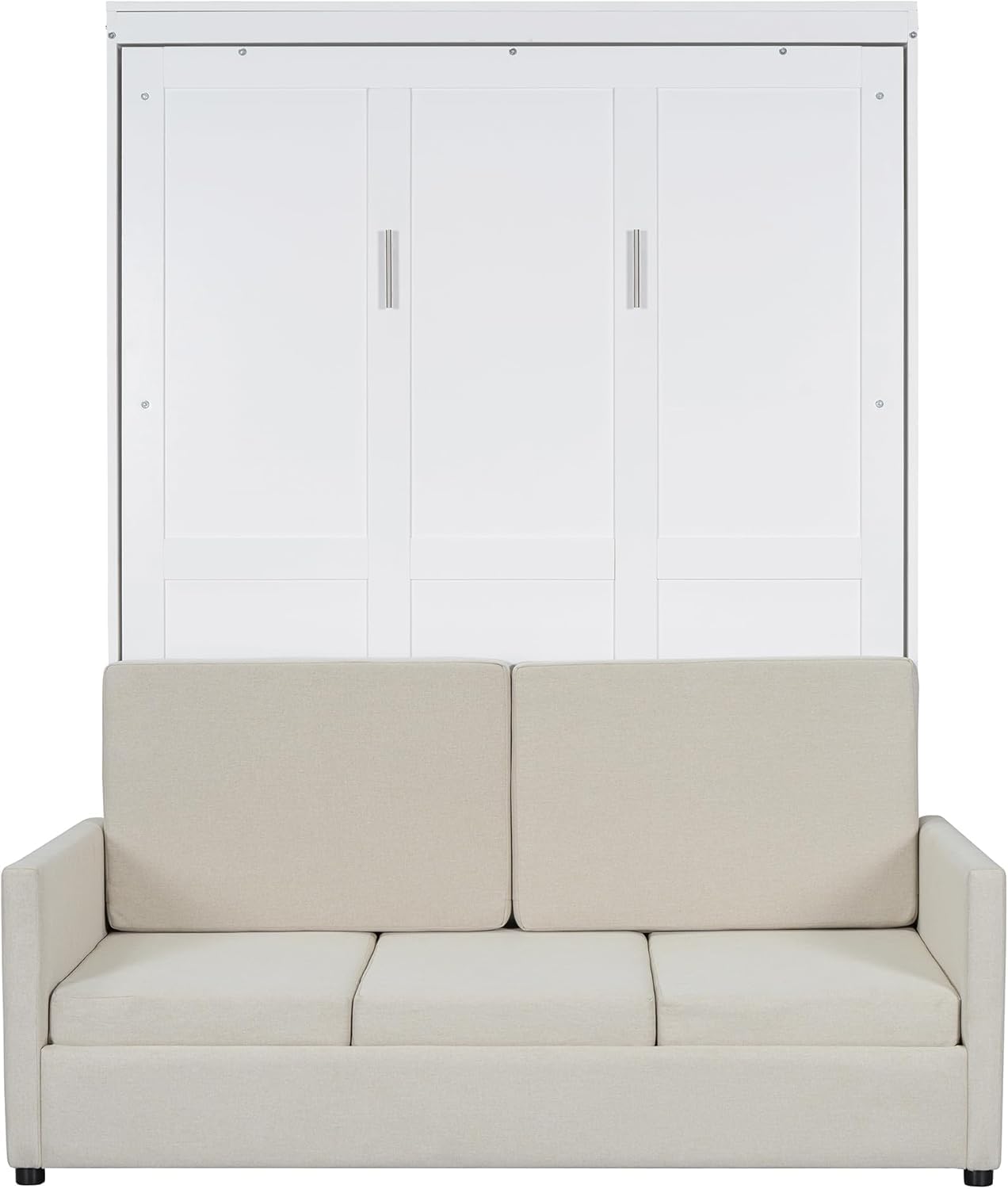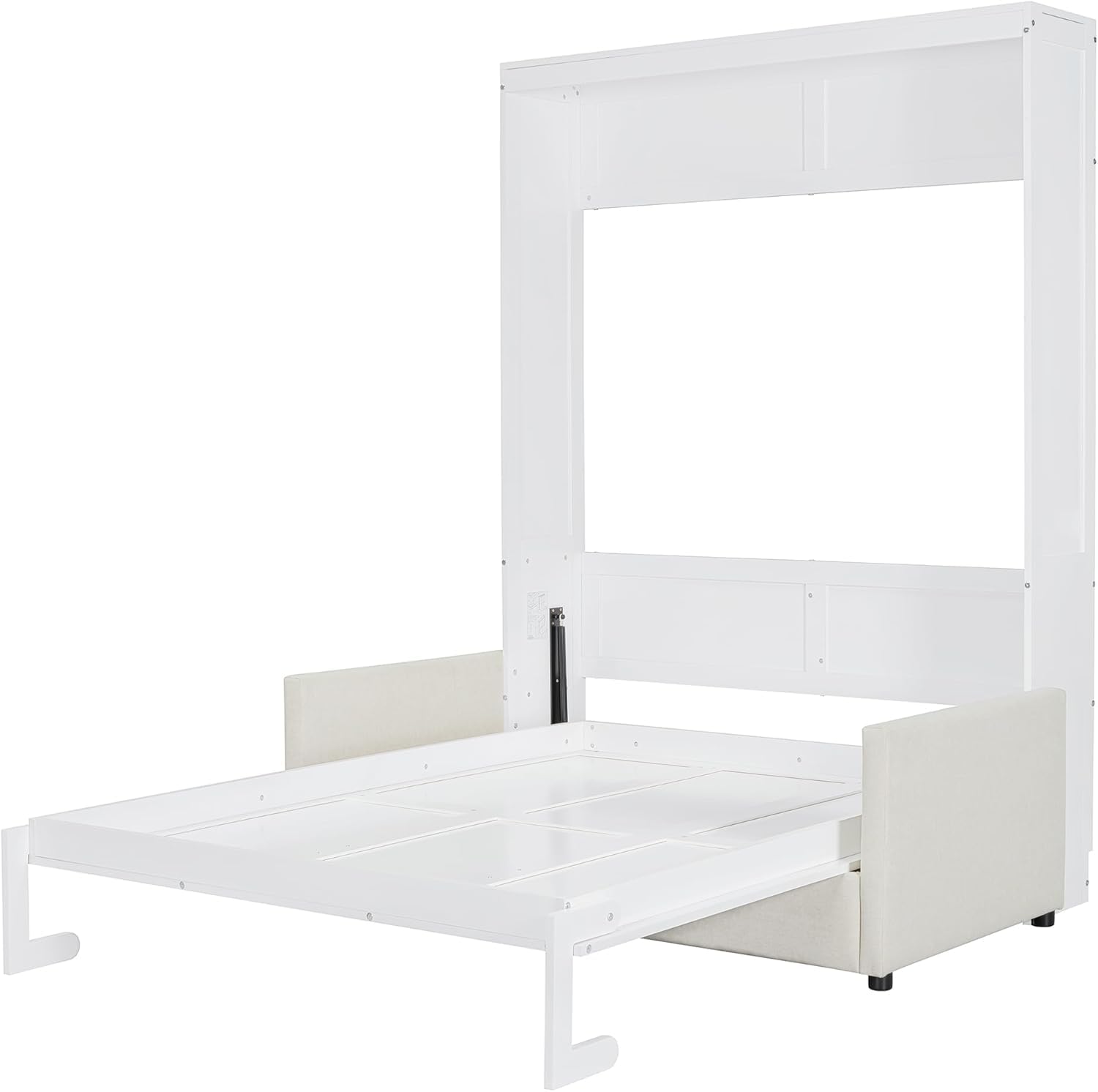 Virubi Full Murphy Bed with Couch,Wood Folding Murphy Wall Bed Cabinet with Sofa (White,Full)