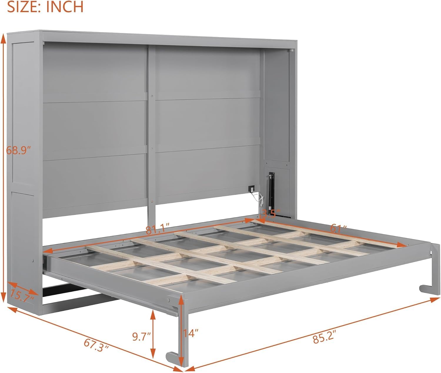 - [Dimensions & Assembly] 85.2"L x 67.3"W x 68.9"H(As a bed) 85.2''L x 15.7"W x 68.8"H(As a cabinet) Mattress not included. Some assembly is required, although we have provided clear instructions and tools.