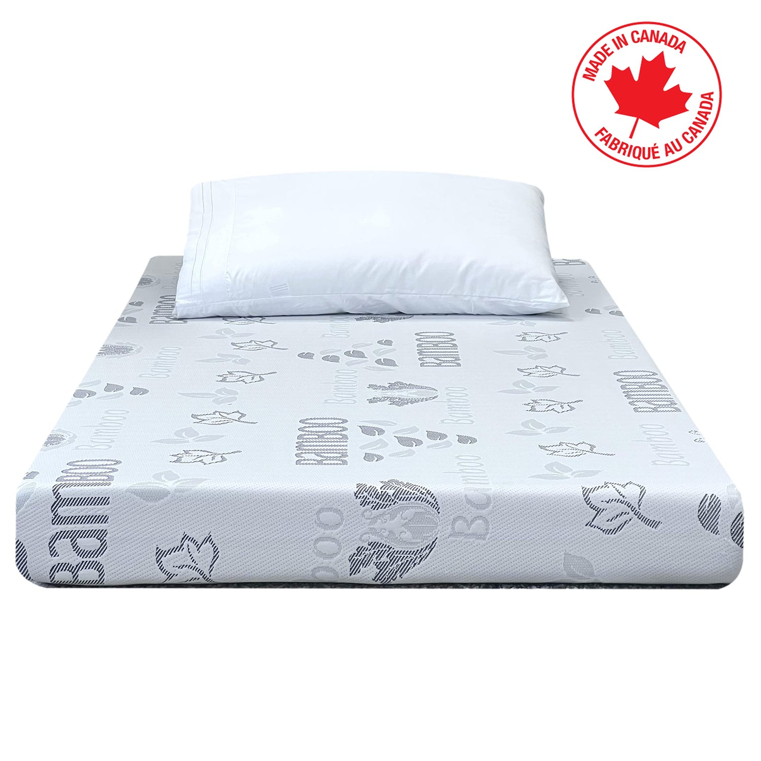 Details: Economical and budgeted twin plush foam mattress is perfectly designed for bunk bed, trundle, guest bed, caravan bed, and kids bed for a restful sleep. A high-quality breathable foam mattress provides excellent support and lightweight makes it easy to move anywhere. Features: 1) Design: Skin-friendly soft feel mattress cover. 2) Quality: Made In Canada reversible foam mattress, for better use, flip the mattress every 2 months. 3) Material & Firmness: High-quality foam and plush feel mattress. 4) Mattress Height: 5-Inch high mattress is the best suitable for bunk bed, trundle bed, caravan bed, and suitable for kids bed. Dimensions (+0.5/-0.5 Inches): 1) Mattress (L x B x H) : 73 x 37 x 5 2) Packing Dimension (L x B x H): 14 x 14 x 20 Packing: 1) Comes compressed and rolled in a box for easy shipping and convenient setup. 2) Expands in 24 - 48 hours in a ventilated space. Please note: The actual color of the mattress cover may vary from the merchandise pictures due to the photographic lighting sources, screen brightness, etc.