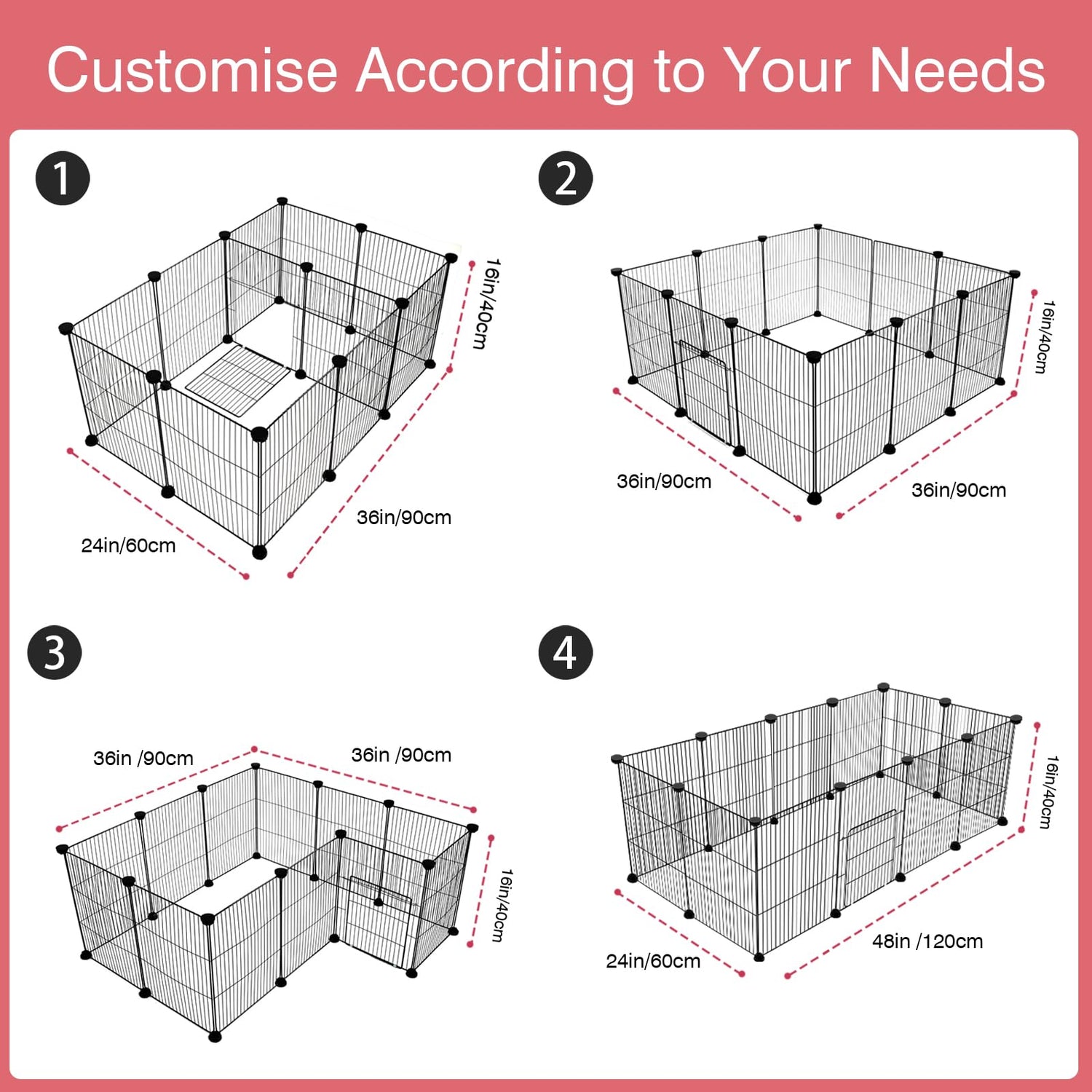 - 🐹【High Quality Fence】Our small animal fence is made of high-quality coated steel, which is more durable and sturdy. The distance between the encrypted fence iron mesh is about 0.5 inches, which will not trap small animals. There is a fence with a door inside the set for easy management of your pet's entry and exit.